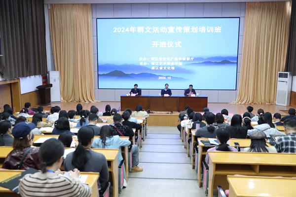 10月29日,由省文化廣電和旅游廳主辦,浙江藝術(shù)職業(yè)學(xué)院、浙江省文化館承辦的2024年群文活動宣傳策劃培訓(xùn)班在我校開班,我校副校長徐芳、繼續(xù)教育學(xué)院院長吳灌紅、浙江省文化館副館長張國樟出席開班儀式,來自全省各地的近百名群文活動宣傳策劃工作人員參訓(xùn)。