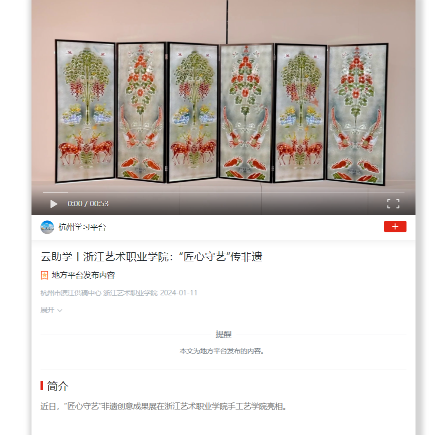 近日,“匠心守藝”非遺創(chuàng)意成果展在浙江藝術(shù)職業(yè)學(xué)院手工藝學(xué)院亮相。