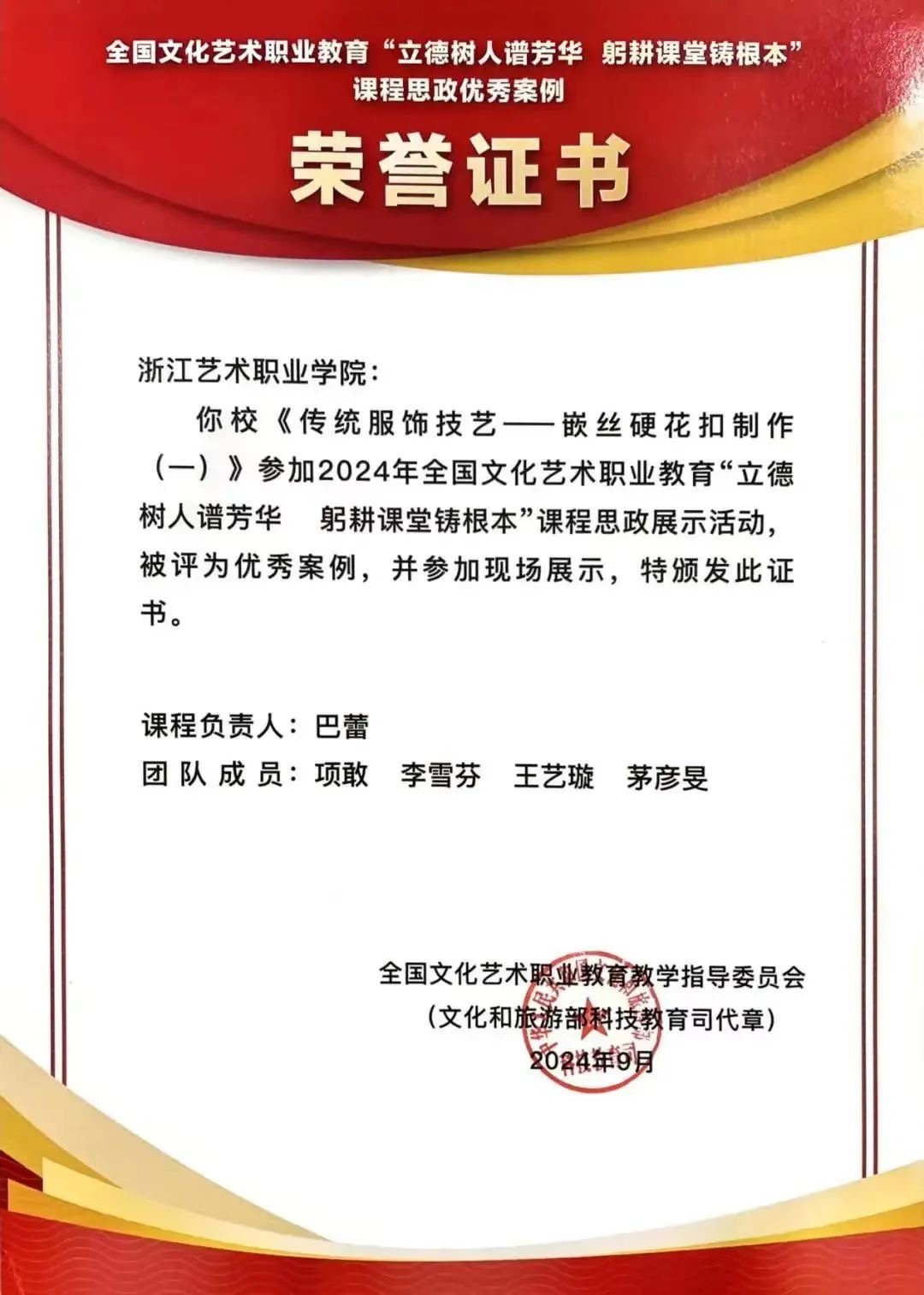 設(shè)計(jì)學(xué)院《傳統(tǒng)服飾技藝——嵌絲硬花扣制作(一)》獲全國(guó)文化藝術(shù)職業(yè)教育課程思政優(yōu)秀案例