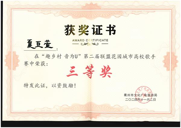 用音樂講述故事,以歌聲傳遞情感。11月2日晚,由衢州市文化廣電旅游局與常山縣人民政府主辦,常山縣文化和廣電旅游體育局等共同承辦的“趣鄉(xiāng)村 音為U”第二屆聯(lián)盟花園城市高校歌手大賽在常山縣舉行,在這座有1800多年歷史的江南小城,來自四省邊際高校選手同臺競技,用歌聲展示風采,唱響美好青春。