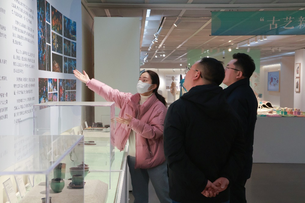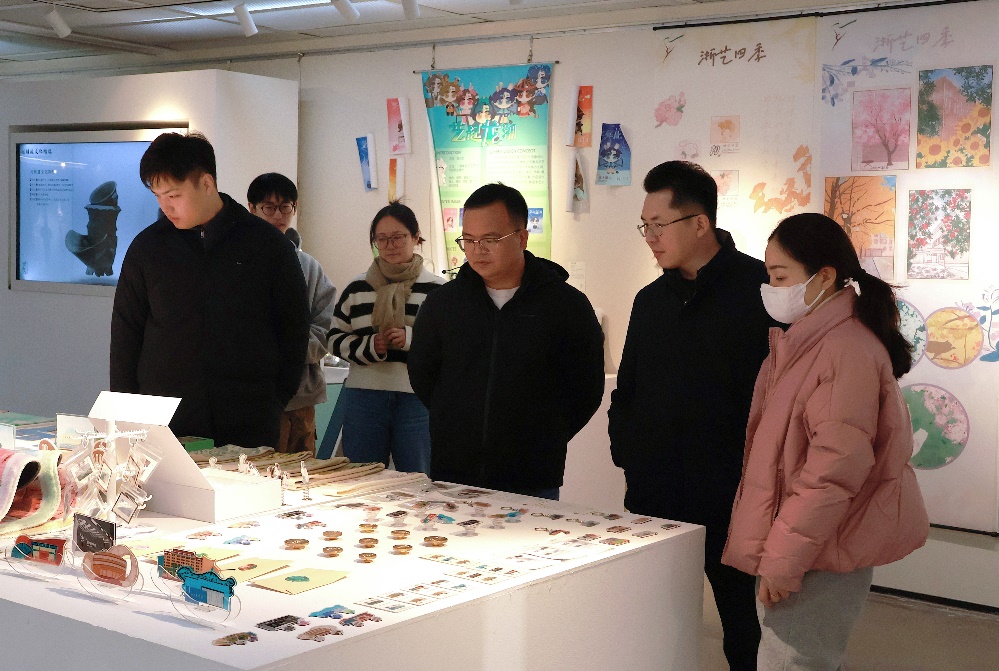 12月12日上午,浙江雅佳豪拍賣有限公司總經(jīng)理喻天龍一行來到手工藝學(xué)院參觀了“匠心守藝”非遺創(chuàng)意成果展,并進(jìn)行交流。