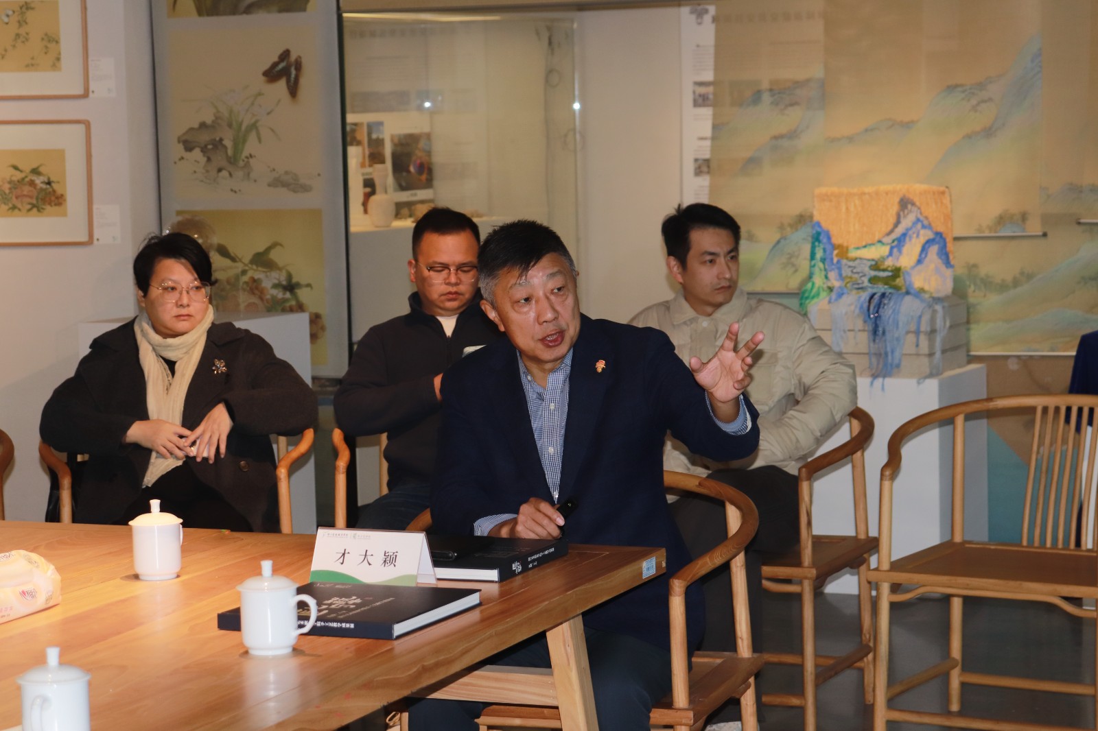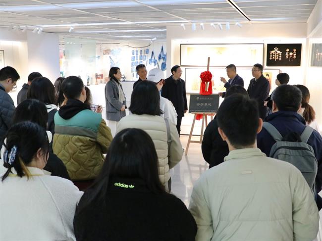 與會(huì)嘉賓先參觀了“古藝新續(xù)”——手工藝校企合作成果展,手工藝學(xué)院黨總支書(shū)記鐘黎介紹了展覽區(qū)域與學(xué)生作品,充分展現(xiàn)了學(xué)校深厚的文化底蘊(yùn)與獨(dú)特的教育資源。此次展示聚焦學(xué)校在傳統(tǒng)文化傳承、現(xiàn)代教育創(chuàng)新實(shí)踐等方面的卓越成就,為即將揭牌的首批中國(guó)游學(xué)基地增添了豐富的內(nèi)涵與背景鋪墊。