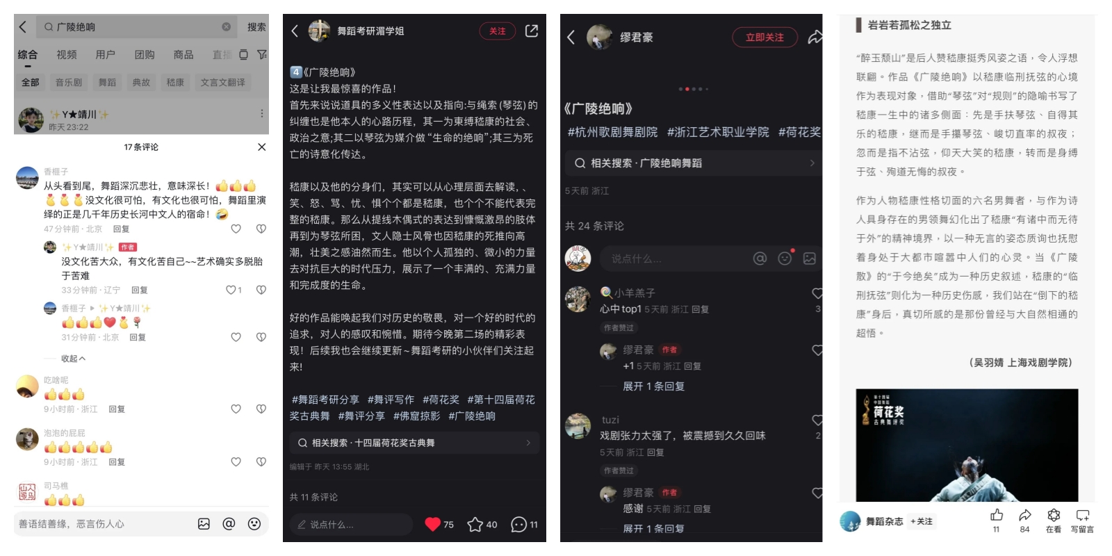 《廣陵絕響》憑借其獨特的藝術魅力、深邃的文化內(nèi)涵以及精湛的編排與表演,引得觀眾與專家們好評,稱其為“一次穿越時空的藝術對話,一次心靈深處的觸動”。