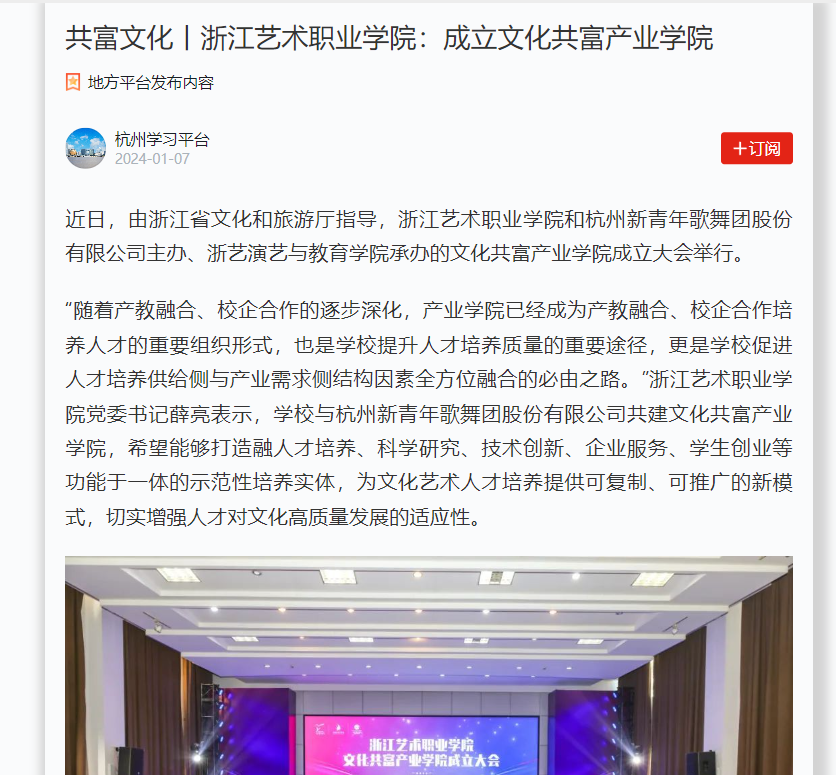學(xué)習(xí)強(qiáng)國(guó)杭州學(xué)習(xí)平臺(tái):共富文化丨浙江藝術(shù)職業(yè)學(xué)院:成立文化共富產(chǎn)業(yè)學(xué)院