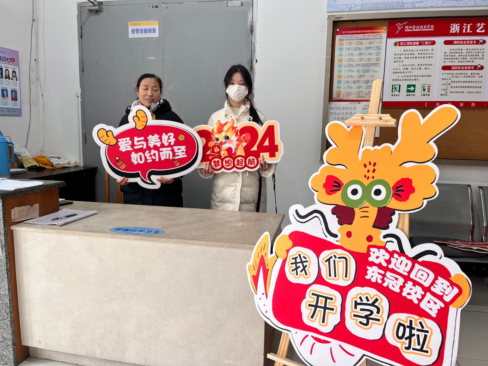 初春相見(jiàn),甚是歡喜。2月25日,浙藝學(xué)子們?nèi)缂s而至,校園瞬間熱鬧了起來(lái)。為營(yíng)造溫馨美好的公寓環(huán)境,元?dú)鉂M(mǎn)滿(mǎn)的開(kāi)學(xué)氛圍,學(xué)工部公寓管理中心早早將學(xué)生公寓門(mén)前布置一新,管理員們以嶄新的面貌、飽滿(mǎn)的熱情歡迎同學(xué)們返校回家。