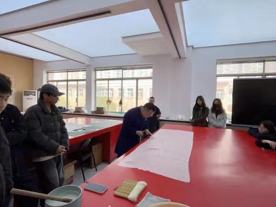《書畫修復(fù)》課程,江杰對(duì)托裱進(jìn)行了演示,詳細(xì)講解了全流程,并與同學(xué)們?cè)谡n堂上進(jìn)行了積極的互動(dòng)與交流,同時(shí)老師們也表示將在后續(xù)課程中推進(jìn)課程教材、數(shù)字資源的開發(fā)建設(shè)與課堂使用。