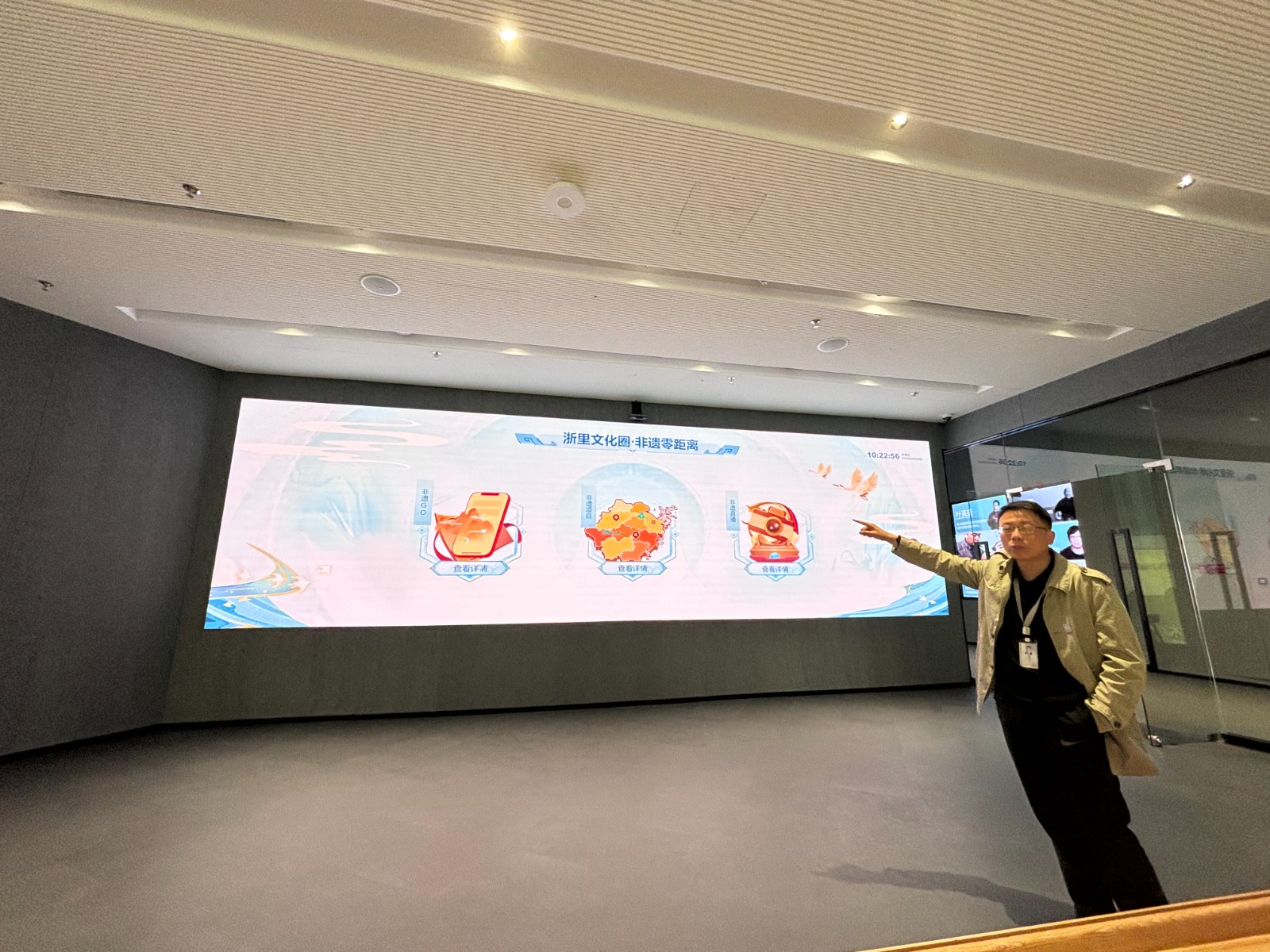 省非遺保護(hù)中心(館)綜合辦公室副主任鄭為貴陪同調(diào)研,詳細(xì)介紹了場館總體情況、樓層分布和浙江非遺數(shù)字大腦。