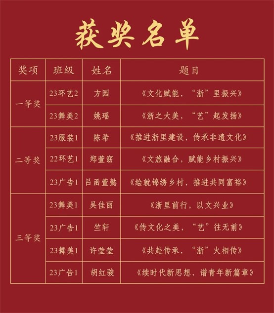 經(jīng)過前期初賽選拔,共有9名學生入圍比賽。參賽選手們緊扣“習近平文化思想在浙江的生動實踐”主題,從小處著眼、細處入手,結合身邊相關故事、案例和實踐活動,充分展現(xiàn)了設計學子獨有的蓬勃朝氣以及追尋理想的拼搏干勁。經(jīng)過現(xiàn)場的激烈角逐,汪琳宣布比賽結果。方園、姚瑤獲一等獎,陳希、鄭萱窈、呂函萱懿獲二等獎,吳佳麗、竺軒、許瑩瑩、胡紅駿獲三等獎。