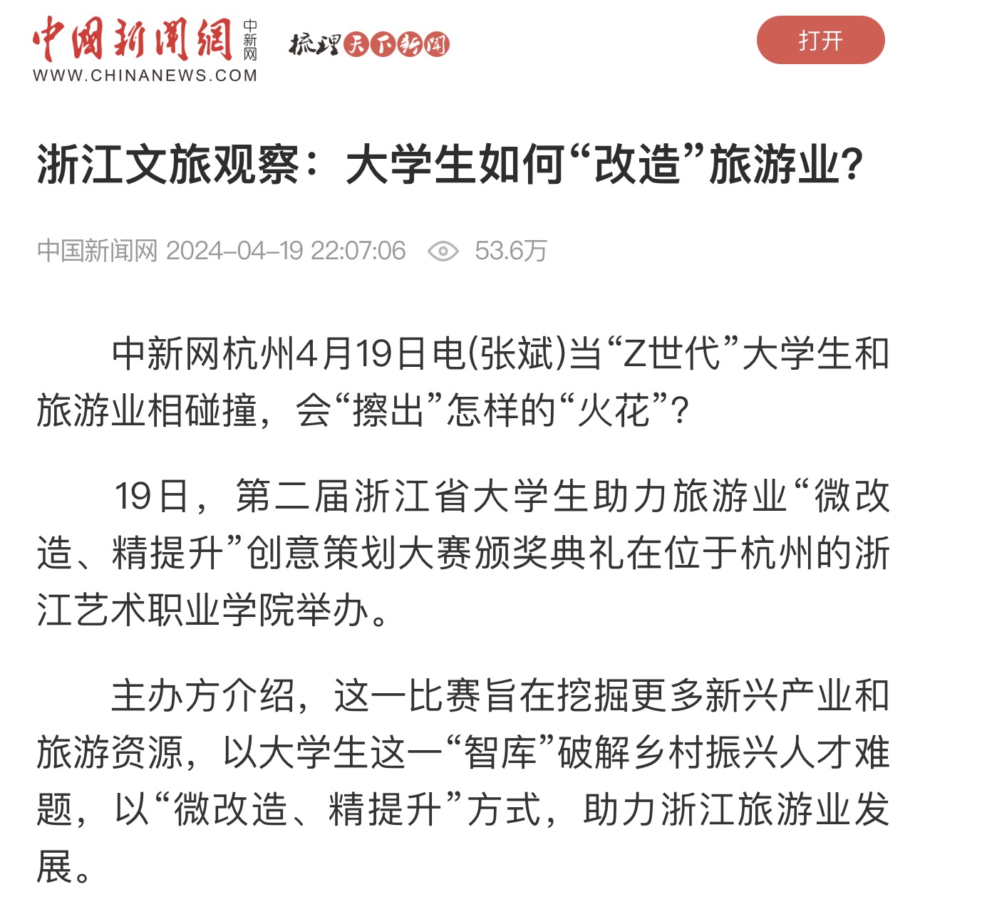 中國新聞網(wǎng) :浙江文旅觀察:大學(xué)生如何“改造”旅游業(yè)?
