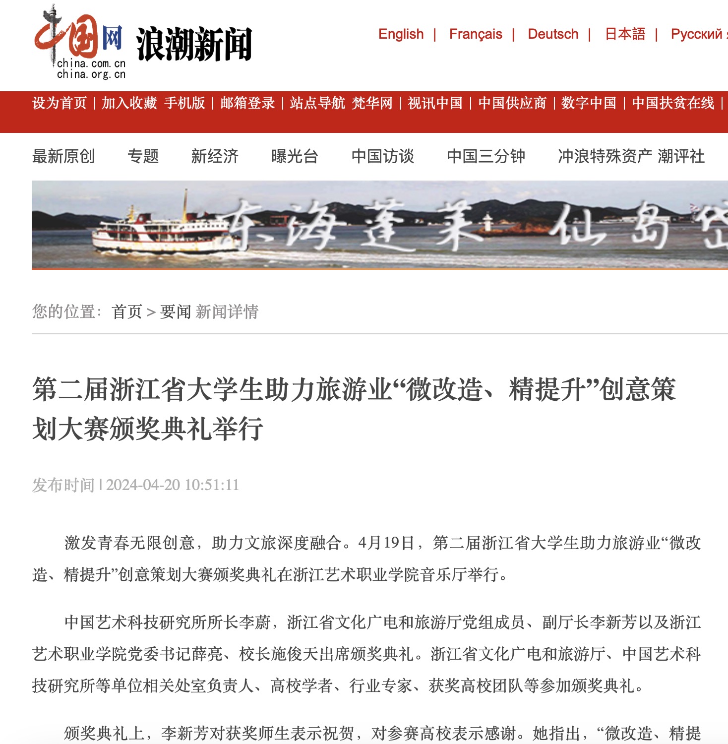 中國網(wǎng):第二屆浙江省大學生助力旅游業(yè)“微改造、精提升”創(chuàng)意策劃大賽頒獎典禮舉行