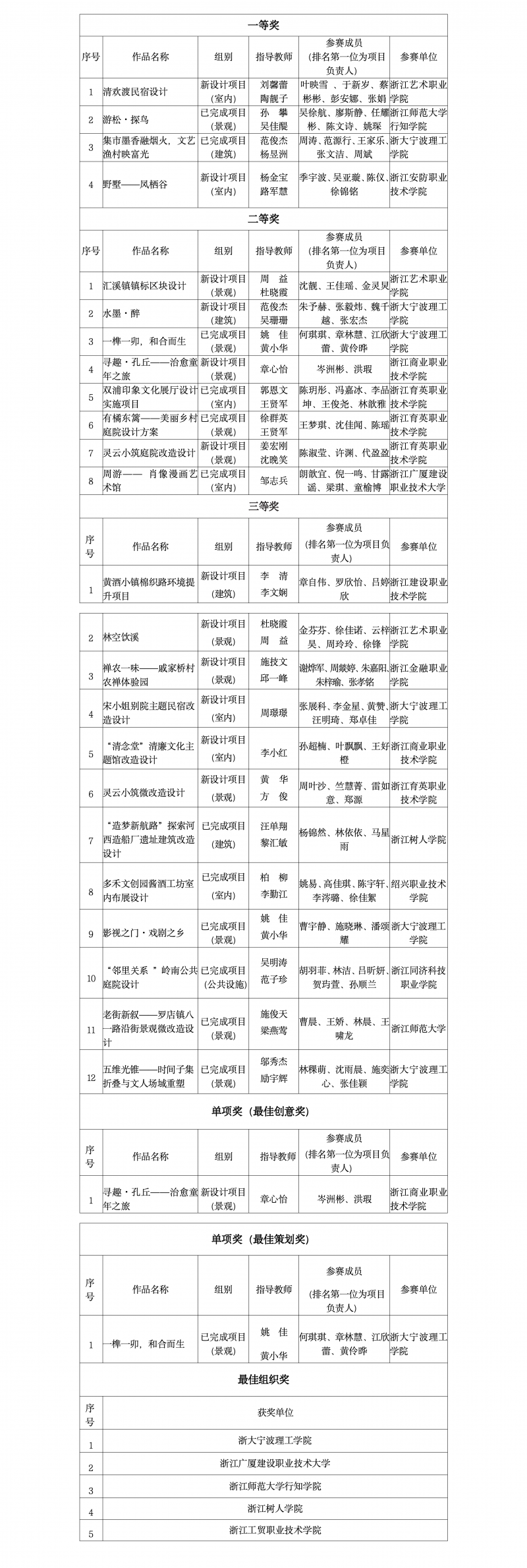 本次大賽吸收最具活力的大學(xué)生群體的創(chuàng)意創(chuàng)新,以大學(xué)生為項目負(fù)責(zé)人,由學(xué)生擔(dān)任組織者、引導(dǎo)者、合作者,成為設(shè)計項目的主人翁,充分發(fā)揮大學(xué)生的主觀能動性,努力形成“微改造、精提升”設(shè)計標(biāo)志性成果,指導(dǎo)A級旅游景區(qū)、度假區(qū)等微改造實踐,助力實現(xiàn)“席地而坐、悅心而游”。自去年5月大賽啟動以來,受到省內(nèi)高校的廣泛關(guān)注和踴躍參與,共有34所高校、121個師生團隊、586名師生參賽。經(jīng)過角逐,大賽最終產(chǎn)生一等獎4個、二等獎8個、三等獎12個、優(yōu)秀獎16個,以及最佳創(chuàng)意獎1個、最佳策劃獎1個、最佳組織獎5個(獲獎名單見附表)。