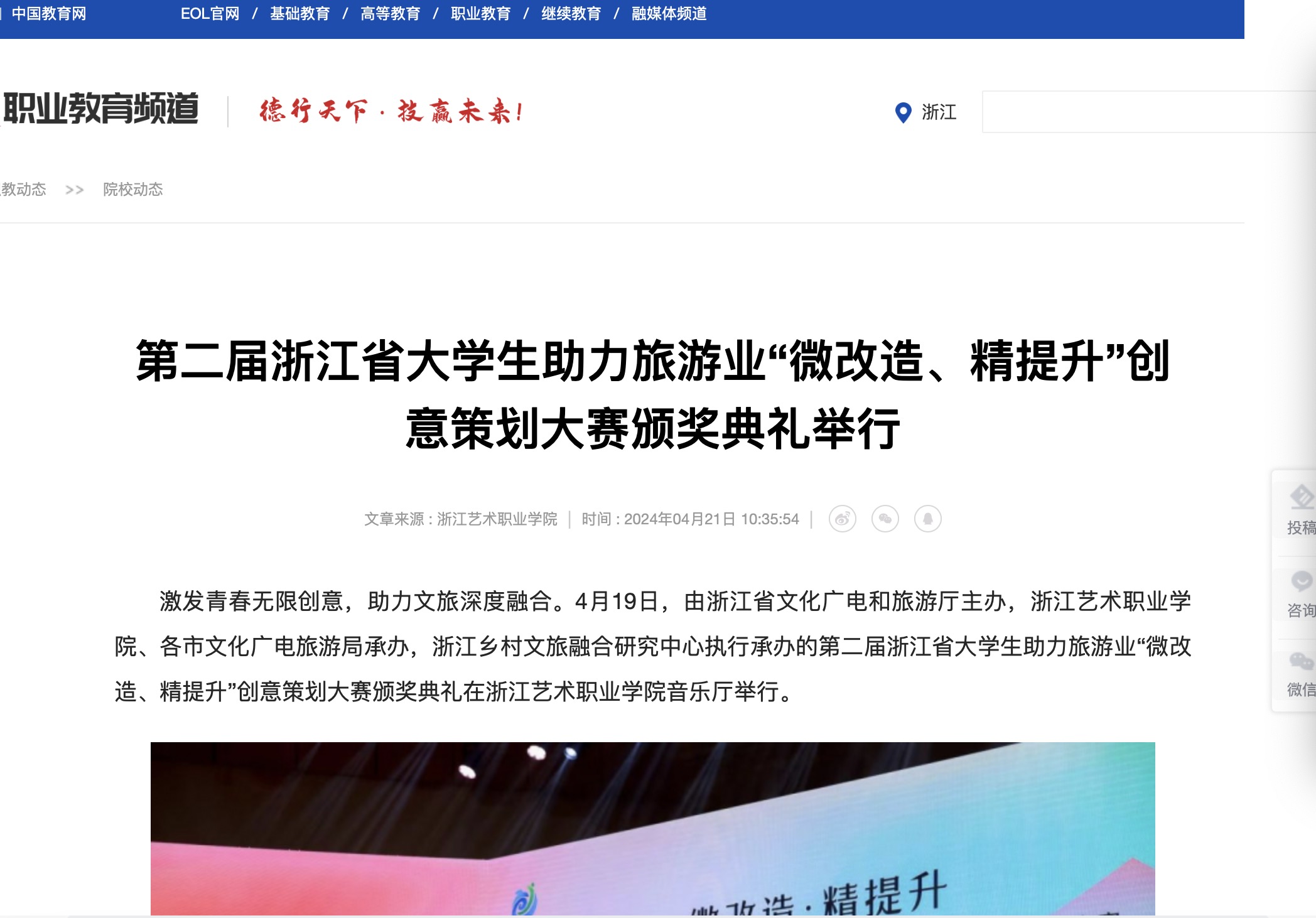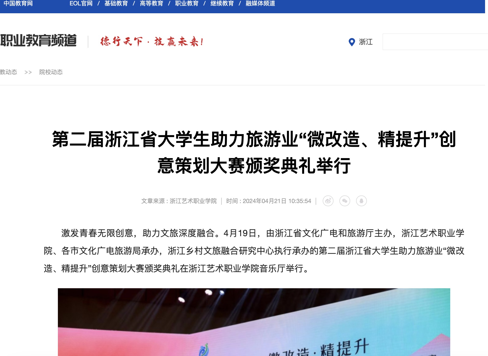 職業(yè)教育頻道:第二屆浙江省大學(xué)生助力旅游業(yè)“微改造、精提升”創(chuàng)意策劃大賽頒獎典禮舉行