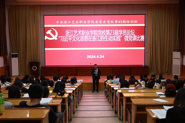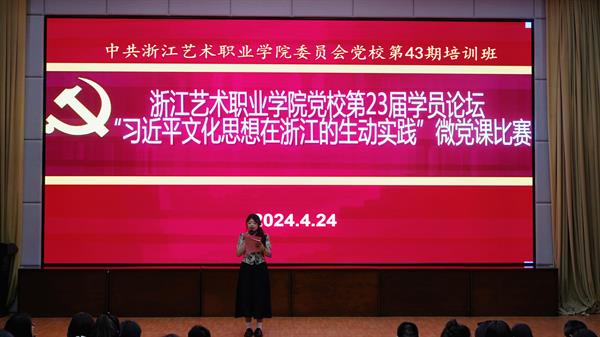 為深入學習貫徹習近平文化思想,學懂弄通做實習近平總書記對浙江工作以及文化廣電和旅游系統(tǒng)特別是文旅融合深度發(fā)展的重要指示批示精神,4月24日晚,浙江藝術(shù)職業(yè)學院43期黨校第23屆學員論壇暨“習近平文化思想在浙江的生動實踐”主題微黨課比賽在圖信中心報告廳舉行。黨委委員、組織部部長、人才辦主任、黨校副校長周應(yīng)中出席,組織部、宣傳部、各教學單位黨總支(直屬黨支部)負責人、黨校任課教師、黨校班主任、第43期黨校學員共170余人參加并觀摩比賽。