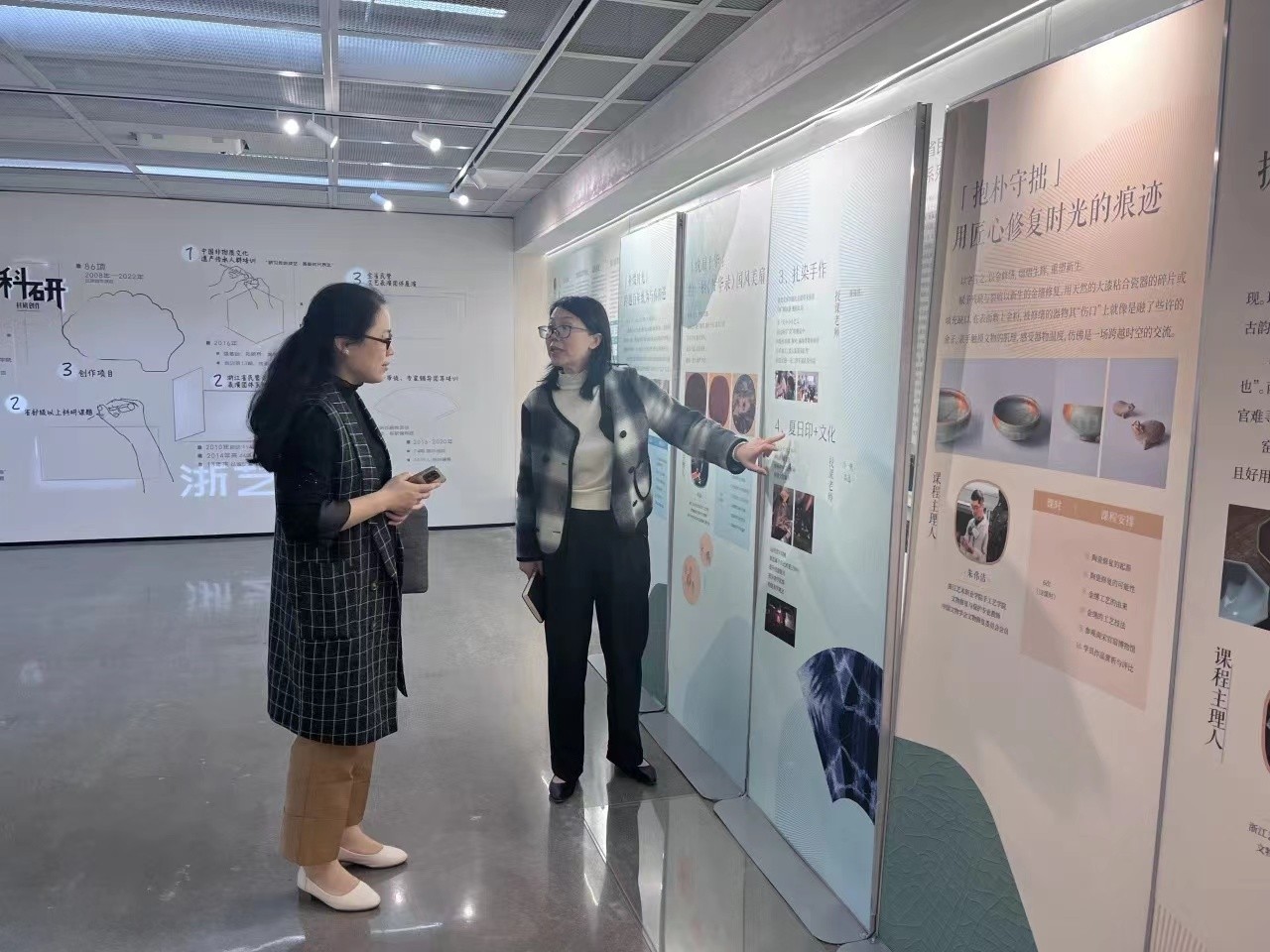 手工藝學(xué)院黨總支書記鐘黎介紹了學(xué)院課程體系、學(xué)生優(yōu)秀作品以及人才培養(yǎng)方案等內(nèi)容,學(xué)院領(lǐng)導(dǎo)班子陪同參觀“匠心守藝”非遺創(chuàng)意成果展,希望與浙江旅游職業(yè)學(xué)院旅行服務(wù)與管理學(xué)院加強(qiáng)院際交流與合作,共同探索學(xué)院發(fā)展和人才培養(yǎng)新路徑。