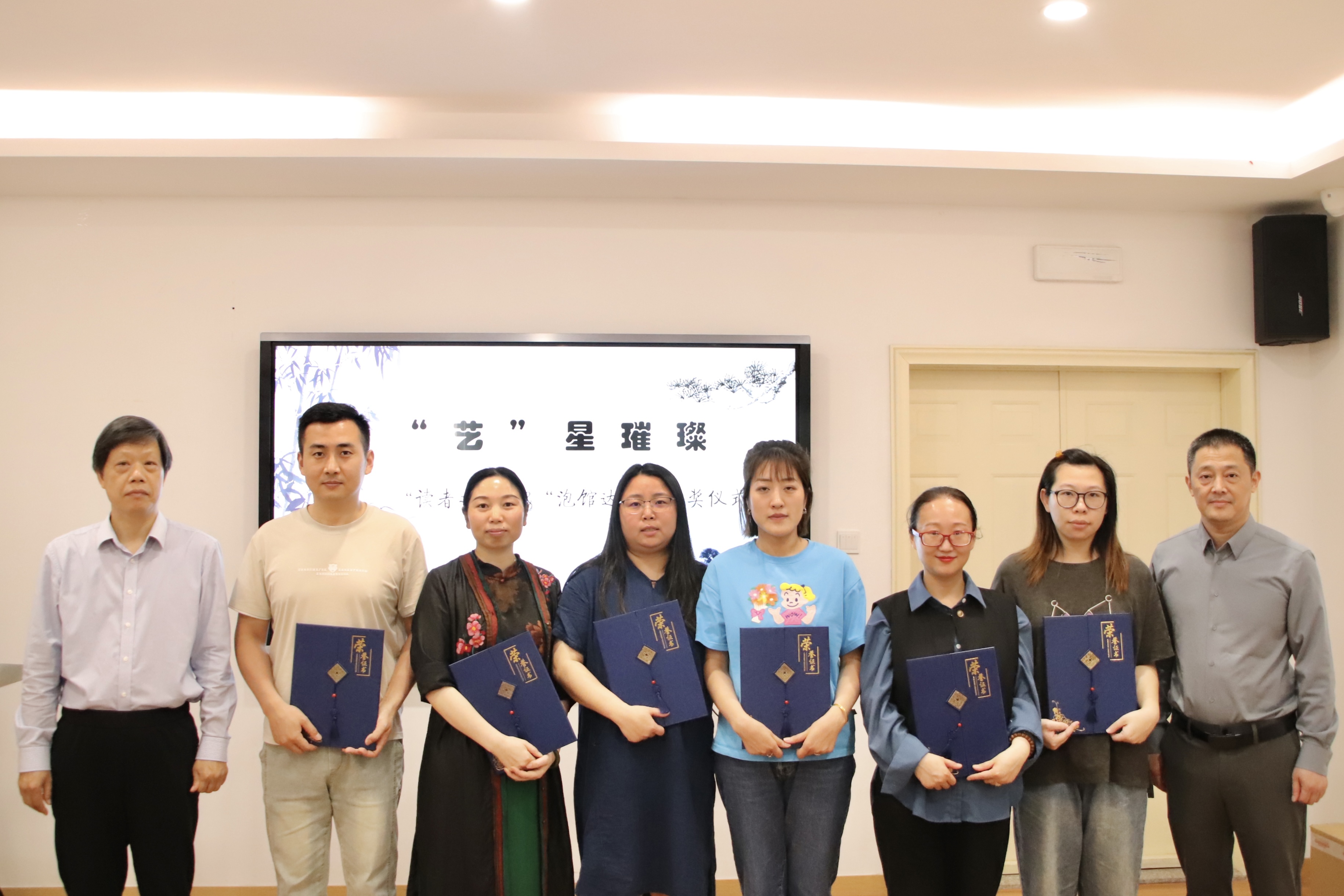 為促進書香校園建設,通過閱讀陶冶情操,鼓勵我校師生養(yǎng)成“愛讀書、多讀書、讀好書”的習慣,營造書香濃郁的校園文化氛圍,5月22日,“藝”星璀璨——2023年度“讀者之星”&“泡館達人”頒獎儀式在圖書信息中心四樓研討室舉行。我校副校長徐芳、圖書信息中心主任項駿、副主任周安與獲得“讀者之星”及“泡館達人”榮譽的二十余位師生參加頒獎典禮,師生齊聚一堂,其樂融融。