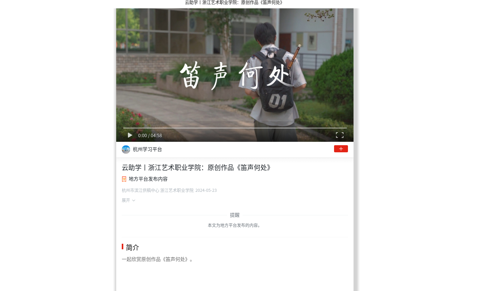 學(xué)習(xí)強(qiáng)國(guó)杭州平臺(tái):云助學(xué)丨浙江藝術(shù)職業(yè)學(xué)院:原創(chuàng)作品《笛聲何處》