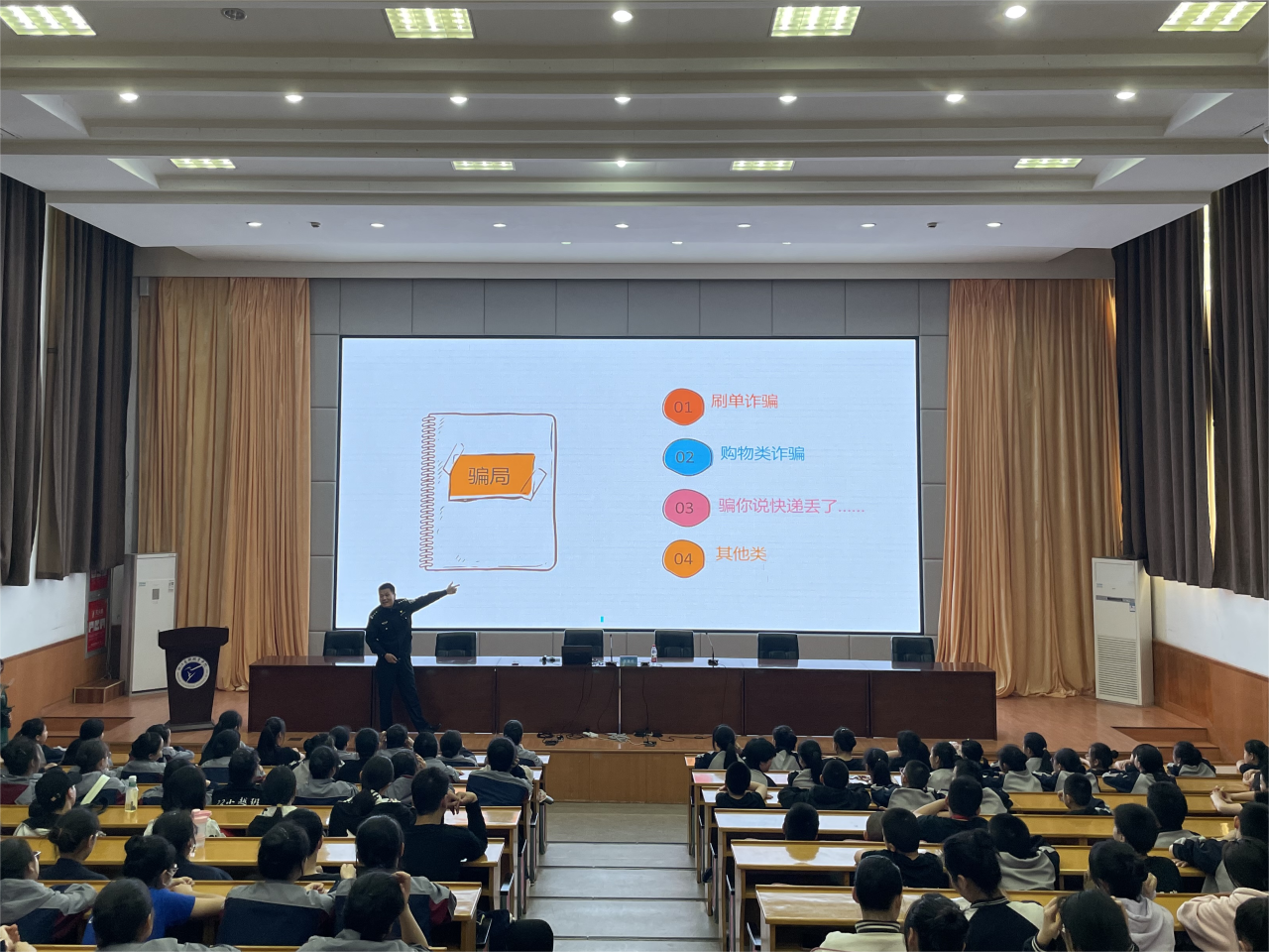 沈警官結合戲曲學院學生年齡段普遍偏小的特點,用生動活潑的語言、豐富形象的肢體動作,介紹了未成年人犯罪類型,結合真實案例進行法制宣講,普及法律知識,將“遵紀守法”根植于學生們的心靈,教育同學們要做一名學法、知法、懂法、守法的青少年。