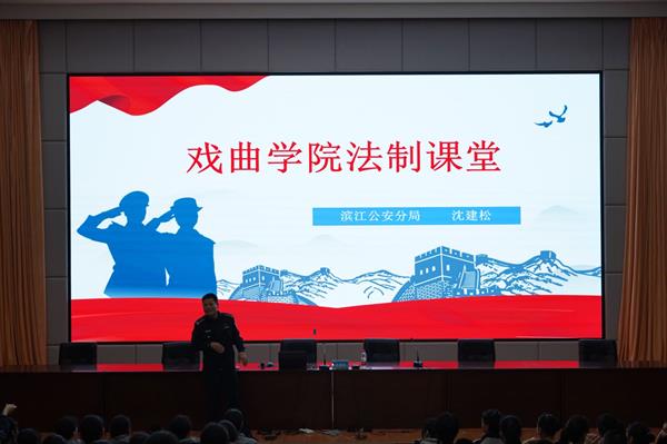 4月28日,戲曲學院開展校園安全教育專題講座,特邀杭州市公安局濱江分局一級警長沈建松警官為師生們授課。