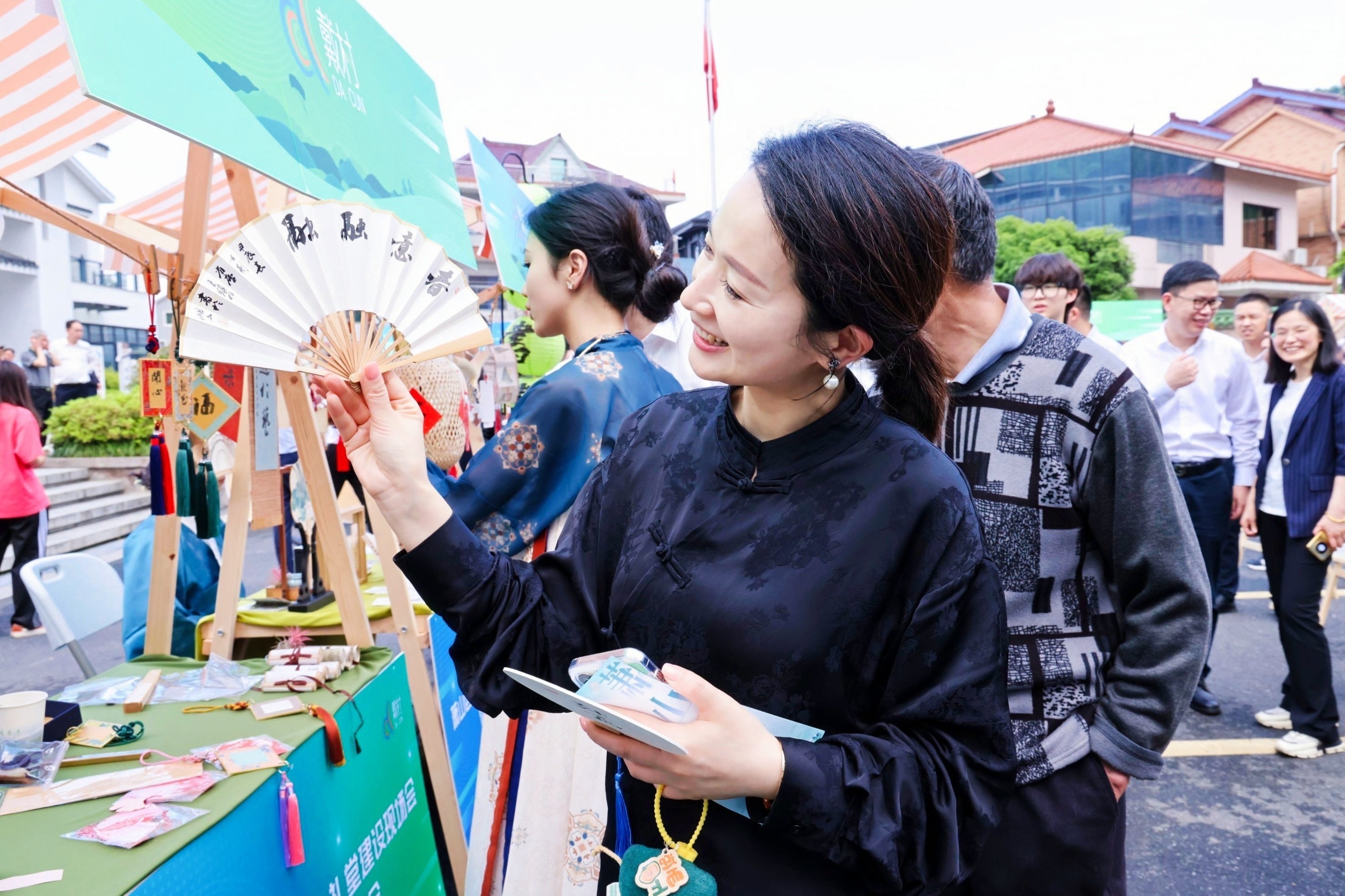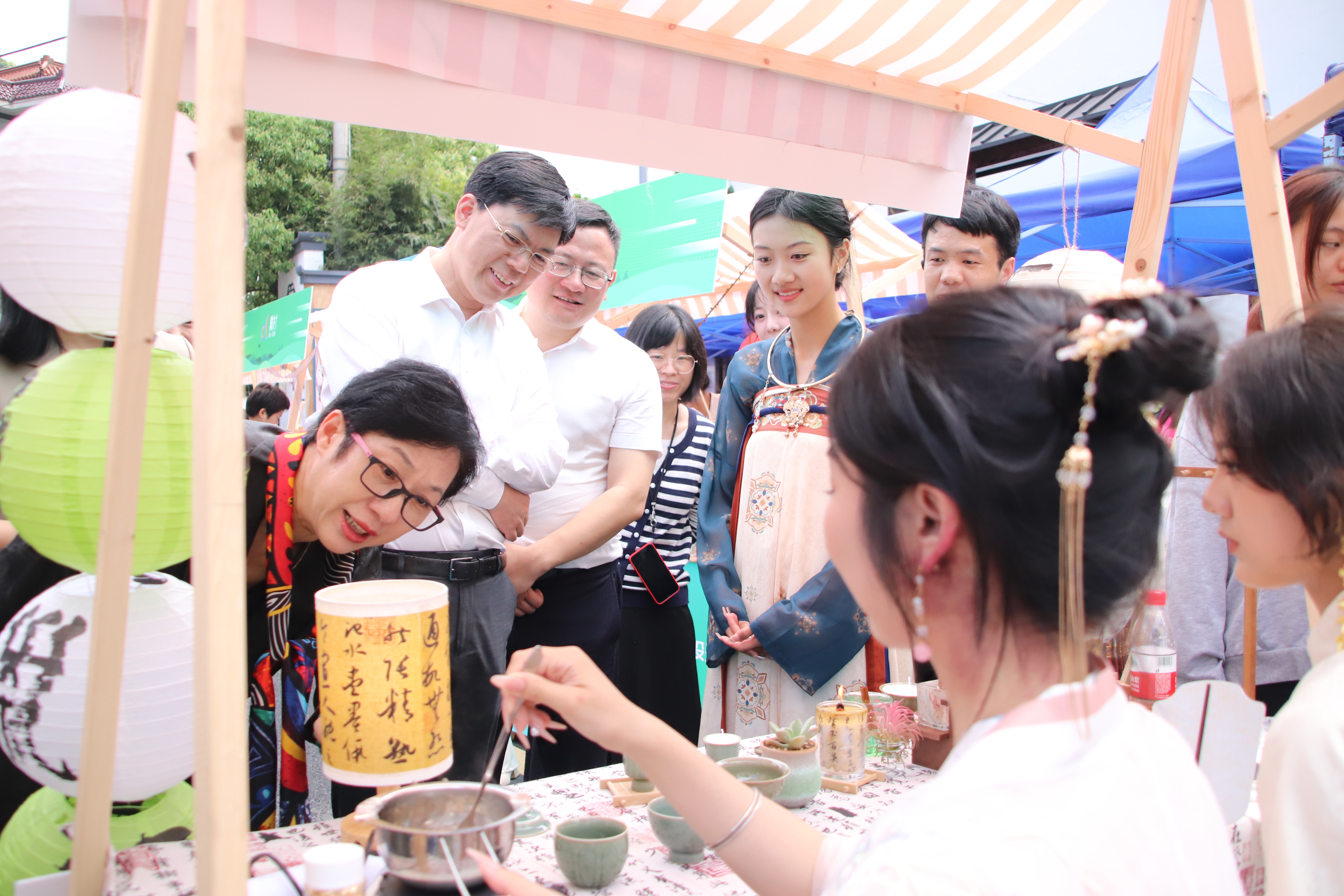 近日,杭州市蕭山區(qū)2024年農(nóng)村文化禮堂建設(shè)現(xiàn)場(chǎng)會(huì)暨文化管家3.0推進(jìn)會(huì)在蕭山區(qū)戴村鎮(zhèn)沈村文化禮堂召開(kāi),我校演藝與教育學(xué)院與戴村鎮(zhèn)校地合作的“國(guó)潮市集”尤為引人注目,這也是學(xué)校成立文化共富產(chǎn)業(yè)學(xué)院后實(shí)施落實(shí)的又一重要成果。蕭山區(qū)委常委、宣傳部部長(zhǎng)周勝華,區(qū)文聯(lián)主席黃勇芳,戴村鎮(zhèn)黨委書(shū)記陳紅丹,演藝與教育學(xué)院領(lǐng)導(dǎo)班子及公共文化服務(wù)與管理專業(yè)師生參加現(xiàn)場(chǎng)活動(dòng)。