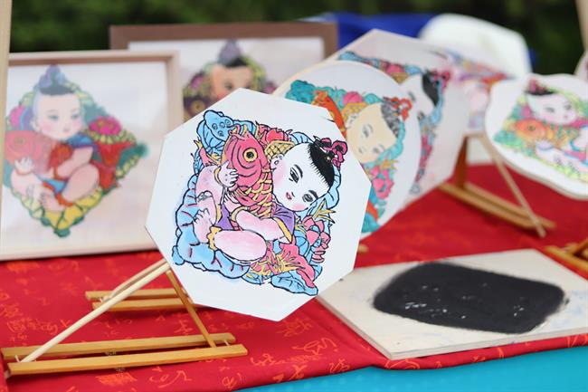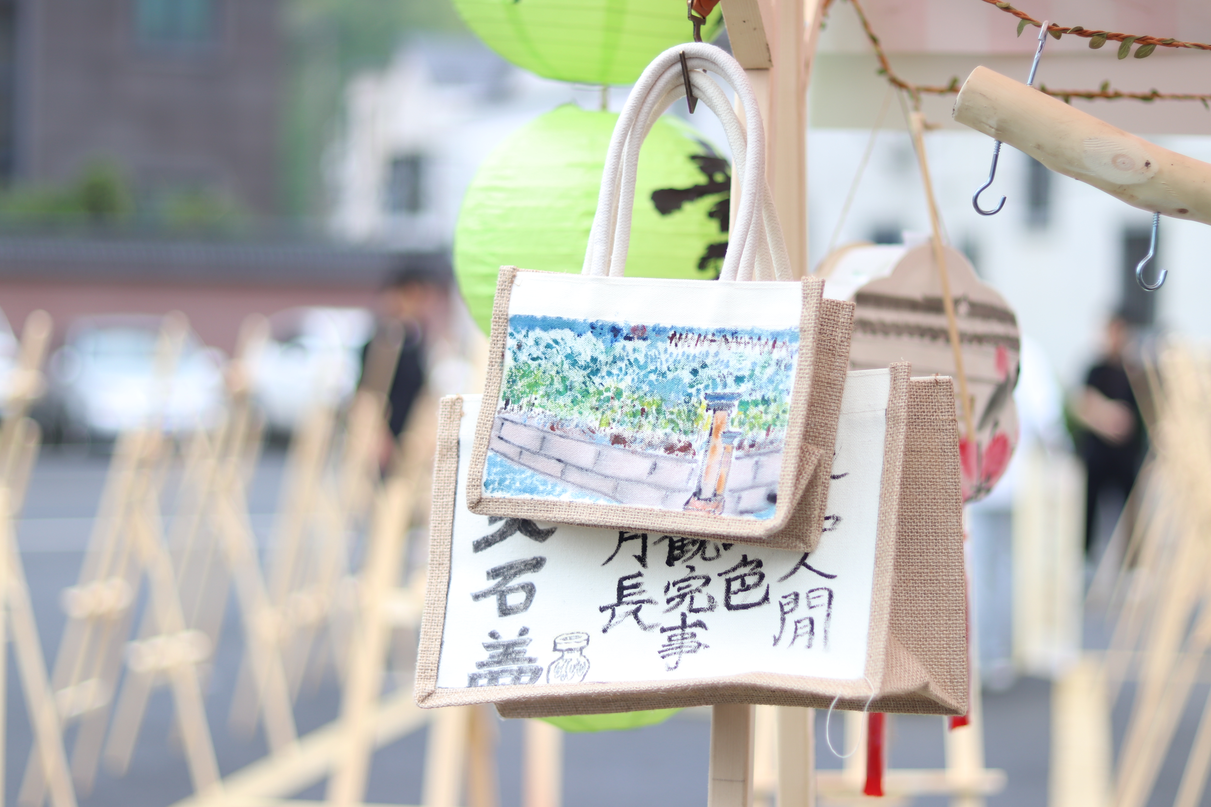 活動(dòng)現(xiàn)場(chǎng)人頭攢動(dòng),一個(gè)個(gè)攤位上的文創(chuàng)產(chǎn)品琳瑯滿目。中國(guó)傳統(tǒng)書(shū)畫(huà)躍身于燈籠、香薰蠟燭、書(shū)簽、紙傘、紙扇、掛件之上,與創(chuàng)意產(chǎn)品完美結(jié)合,精致美觀又充滿文化氣息,引得現(xiàn)場(chǎng)觀眾頻頻駐足,爭(zhēng)相購(gòu)買(mǎi)。大家在一件件扇面和書(shū)簽中體悟融入生活中的藝術(shù),從火漆印章和香薰蠟燭中感受傳統(tǒng)文化的新魅力。值得一提的是,師生們還為戴村鎮(zhèn)大石蓋村開(kāi)發(fā)了系列文創(chuàng)產(chǎn)品,也受到一致好評(píng)。