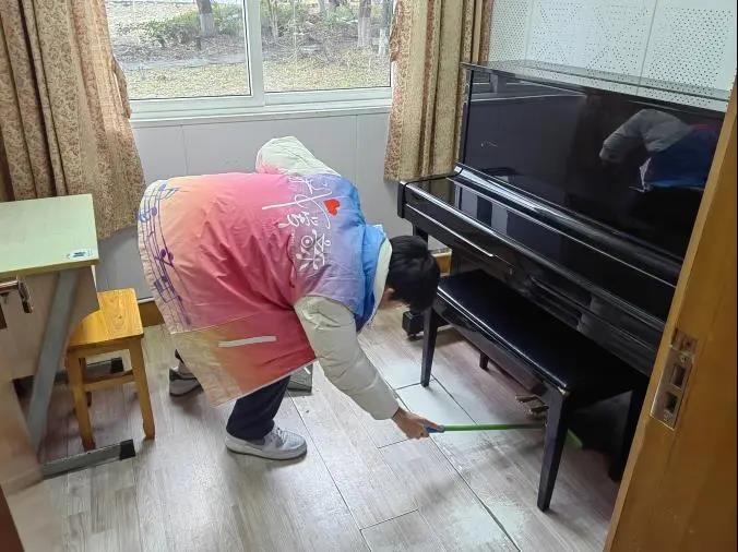 科學研究表明,體力勞動如同運動一樣,能使人的血液循環(huán)、新陳代謝速度加快,有助于疏解焦慮情緒、維持良好心理狀態(tài)。本次“以勞健心、育見成長”大掃除圍繞““校園-教室-琴房-寢室”四處開展全方位的義務勞動實踐,引導五年一貫、純中專及大專各學制學生在長期學習、生活的場所進行物品清理與場地打掃。通過這一勞動教育疏解和釋放學生的不良心理情緒,在勞動教育中逐漸完善和健全學生心智人格,增進大學生對勞動的認知和認同,引導其杜絕“躺平”“佛系”“擺爛”等消極心態(tài)。