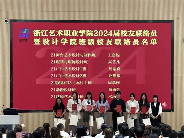 經(jīng)各二級(jí)學(xué)院的精心選拔和推薦,產(chǎn)學(xué)合作處審核,全校公示,最終確定了新一屆校友聯(lián)絡(luò)員的名單,并于5月正式印發(fā)了《關(guān)于公布浙江藝術(shù)職業(yè)學(xué)院2024屆校友班級(jí)聯(lián)絡(luò)員的通知》。此次共有43名優(yōu)秀的應(yīng)屆畢業(yè)生脫穎而出,成為新一任校友聯(lián)絡(luò)員,他們將肩負(fù)起連接校友與學(xué)校的重任。產(chǎn)學(xué)合作處與浙藝校友會(huì)共同精心設(shè)計(jì)了校友聯(lián)絡(luò)員聘書及精美的紀(jì)念品。在2024屆畢業(yè)典禮上,學(xué)校隆重舉行了新一屆校友聯(lián)絡(luò)員的聘任儀式。這一儀式不僅是對(duì)他們過(guò)去努力的肯定,更是對(duì)他們未來(lái)工作的期許。