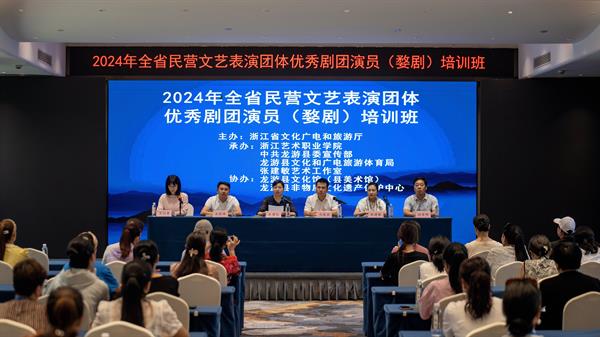 7月19日,由浙江省文化廣電和旅游廳主辦,浙江藝術職業(yè)學院、中共龍游縣委宣傳部、龍游縣文化和廣電旅游體育局和張建敏藝術工作室共同承辦的2024年全省民營文藝表演團體優(yōu)秀劇團演員(婺劇)培訓班在龍游開班,來自全省各地民營文藝表演團體的60多名婺劇演員參加培訓。我校繼續(xù)教育學院院長吳灌紅,國家級婺劇傳承人、金華藝術學校原副校長、梅花獎獲得者張建敏,龍游縣委常委、宣傳部部長馬俊兵,龍游縣委宣傳部部務會議成員、精神文明建設指導中心主任求張鋒,龍游縣文廣旅體局黨委委員徐榮偉等出席開班儀式。