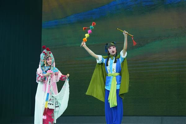 演出當晚,觀眾們在愉快、幽默、喜慶、祥和的氛圍中欣賞了學員們的一個個成果。高腔折子戲《碧波潭——拔鱗》講述了碧波仙子棄道轉為凡人,永享人間真愛的故事,這個戲既要求演員有松陽高腔的演唱韻味,還必須有過硬的基本功技巧;《小放牛》是流行于民間的歌舞小戲,一段載歌載舞松陽高腔對唱,描寫了村姑向牧童問路,俏皮的牧童故意為難村姑的有趣情景;折子戲《呂布試馬》用扎實的基本功展示了武生的颯爽英姿;新編高腔小戲《張玉娘盼郎》反映了南宋四大女詩人之一的張玉娘思郎、盼郎、郎不歸的凄美故事;在2023年全國小戲小品展演獲得優(yōu)秀劇目獎的松陽高腔保留劇目《八佰兩》反映了生活中家長理短的有趣故事,提倡以善化人,以情動人。演出在戲曲基本功組合《代代相傳》中拉下了帷幕,贏得了觀眾熱烈掌聲。