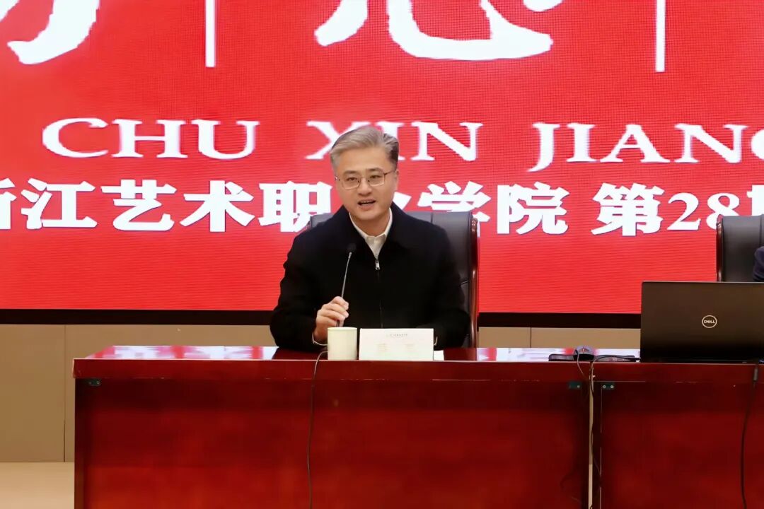10月21日下午,學(xué)校建校70周年校慶前夕,浙江藝術(shù)職業(yè)學(xué)院教學(xué)綜合樓大報告廳內(nèi)氣氛莊重?zé)崃遥?/span>2025年第四期(總第28期)“初心講堂”在此舉辦。本期講堂圍繞重溫習(xí)近平同志致浙江藝術(shù)職業(yè)學(xué)院建校50周年校慶賀信精神,特邀原浙江省文化廳黨組書記、廳長楊建新作專題輔導(dǎo),校黨委班子成員、全體中層干部、五六級職員、主管崗位管理人員、基層黨支部書記、教研室主任、專職組織員、全體思政課專任教師、部分學(xué)生干部和黨員學(xué)生代表等參與學(xué)習(xí),在回望囑托中為學(xué)校建設(shè)發(fā)展凝聚思想共識、團結(jié)奮進力量。
