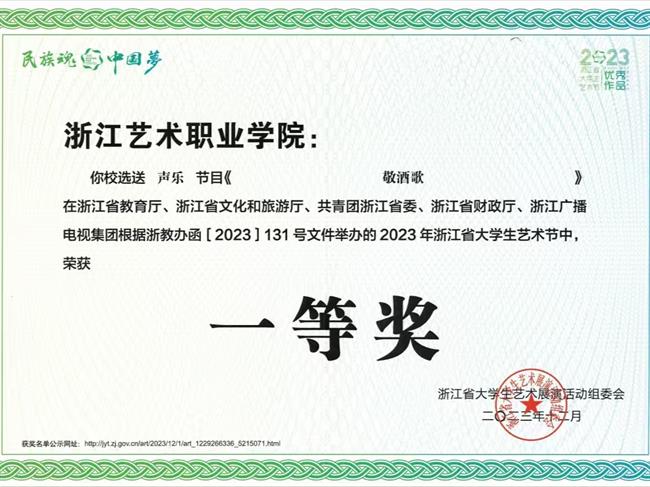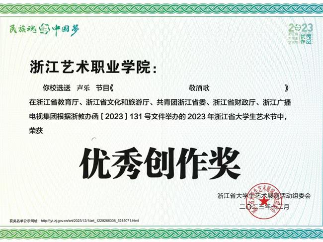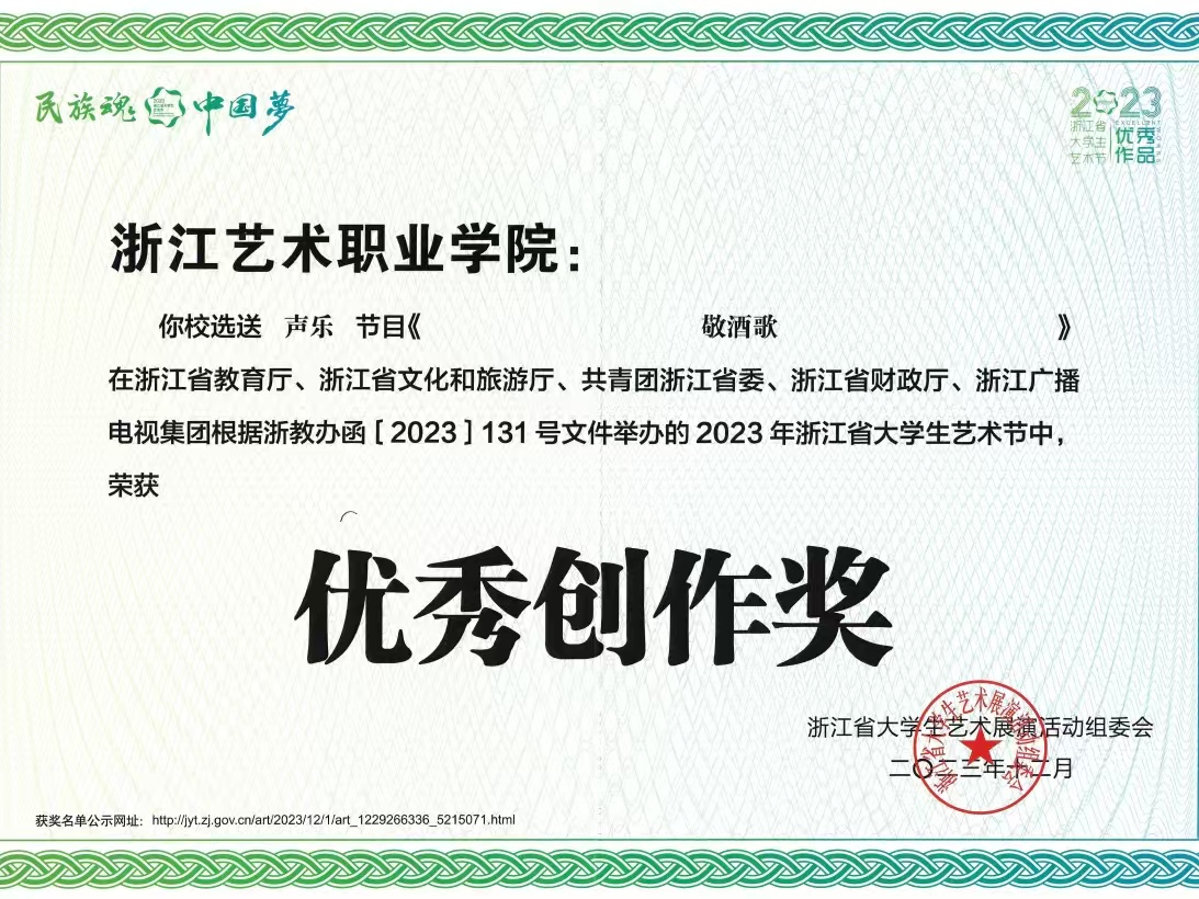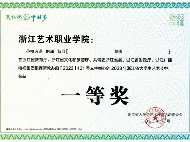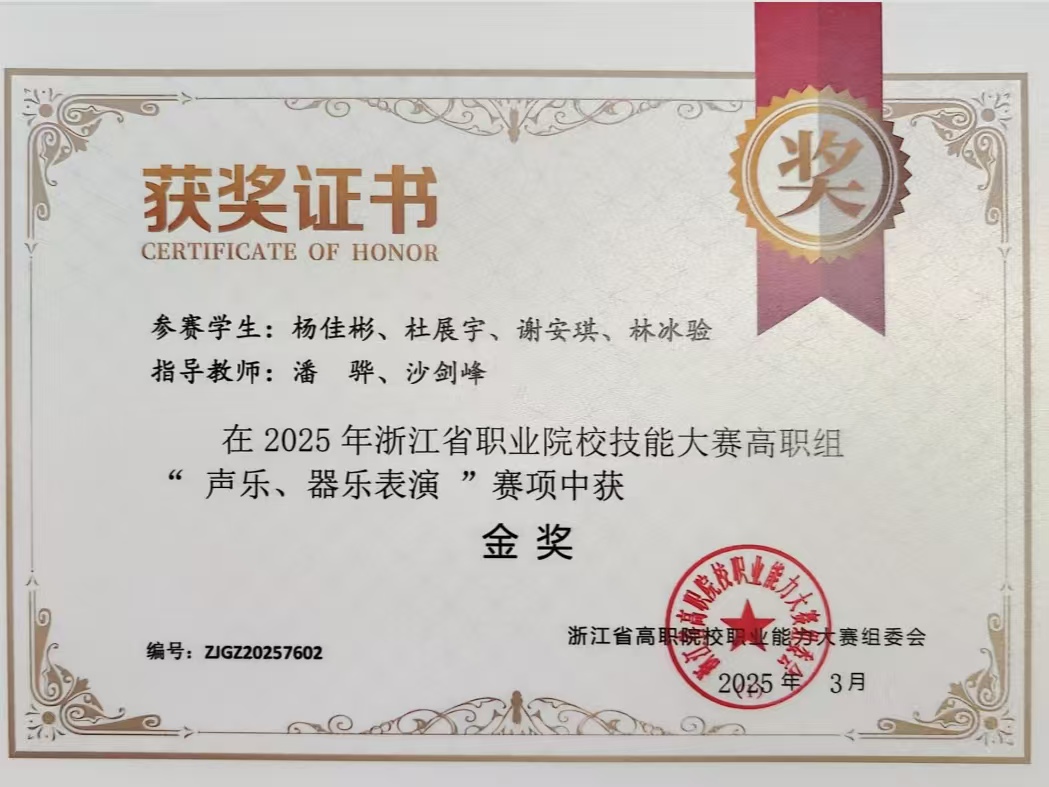 近年來,師生先后斬獲全國(guó)大學(xué)生藝術(shù)展演“個(gè)人專項(xiàng)獎(jiǎng)”、全國(guó)大學(xué)生曲藝優(yōu)秀作品展演“優(yōu)秀劇目”等重大榮譽(yù)。在省級(jí)競(jìng)賽中,學(xué)前教育團(tuán)隊(duì)榮獲浙江省教師教學(xué)能力大賽一等獎(jiǎng)并晉級(jí)國(guó)賽,創(chuàng)學(xué)校歷史最佳成績(jī);學(xué)生奪得浙江省職業(yè)院校技能大賽聲樂器樂表演賽項(xiàng)金獎(jiǎng)、“詩(shī)畫江南·活力浙江”金牌講解員稱號(hào),并在浙江省大學(xué)生藝術(shù)節(jié)、浙江省中華經(jīng)典誦寫講大賽、浙江省大學(xué)生多媒體競(jìng)賽、浙江省高等學(xué)校師范生教學(xué)競(jìng)賽等多項(xiàng)A類學(xué)科競(jìng)賽中累計(jì)榮獲嘉獎(jiǎng)60余項(xiàng),充分彰顯了學(xué)院人才培養(yǎng)的厚積薄發(fā)與全面質(zhì)效。