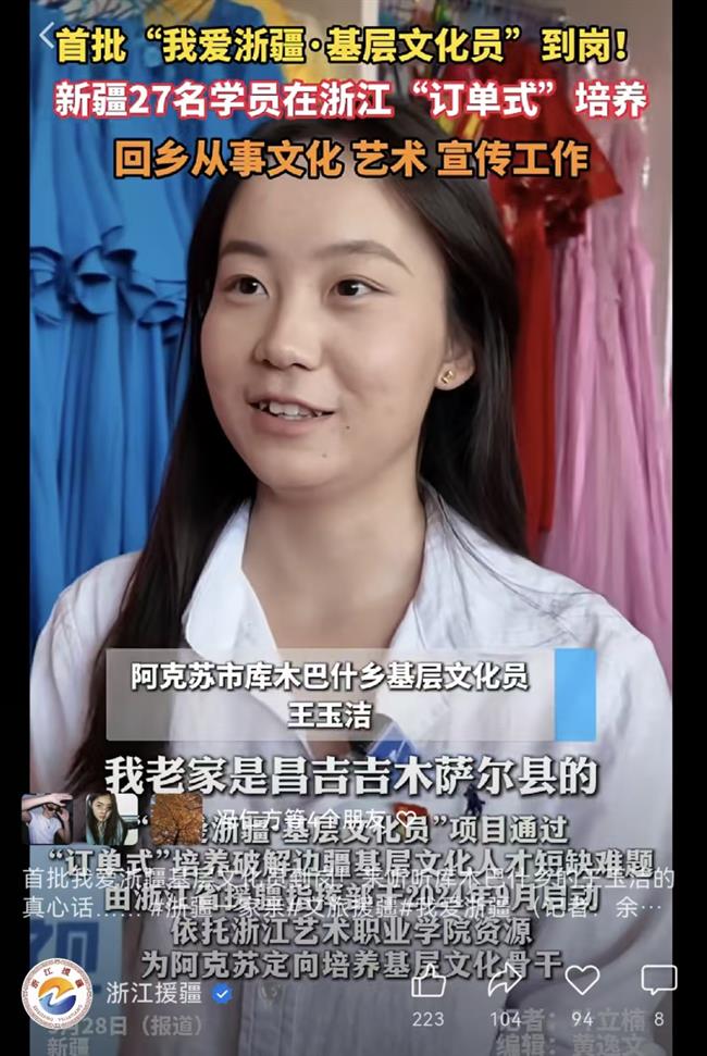 文化潤(rùn)疆,輸出“浙江經(jīng)驗(yàn)”:學(xué)院構(gòu)建“人才培養(yǎng)+文藝創(chuàng)作”雙輪驅(qū)動(dòng)模式,與新疆高校聯(lián)合培養(yǎng)的“我愛浙疆·基層文化員”學(xué)員(民族生占比80%)全部順利完成學(xué)業(yè),并與阿克蘇地區(qū)及兵團(tuán)第一師10家文旅單位實(shí)現(xiàn)就業(yè)結(jié)對(duì)。同期創(chuàng)排的大型文旅演藝情景劇《陳湯迎賓》,以文化賦能助力天山托木爾景區(qū)成功創(chuàng)建國(guó)家5A級(jí)旅游景區(qū),已成為景區(qū)核心文旅IP,累計(jì)接待游客超20萬(wàn)人次。兩大項(xiàng)目協(xié)同并進(jìn),為浙江文旅援疆輸出了可復(fù)制、可推廣的“文化潤(rùn)疆”實(shí)踐樣本。