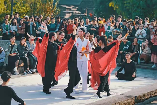 產(chǎn)教共建,助力文旅融合:與杭州演藝集團(tuán)有限公司合作文旅演藝《西湖東坡》駐場(chǎng)秀,為學(xué)校首個(gè)實(shí)現(xiàn)“長(zhǎng)周期演出、全流程參與、多專業(yè)協(xié)作”的產(chǎn)教融合典型項(xiàng)目,已累計(jì)完成演出超百場(chǎng),創(chuàng)收逾百萬(wàn)。與杭州新青年歌舞團(tuán)有限公司共建文化共富產(chǎn)業(yè)學(xué)院,成功承辦蕭山區(qū)農(nóng)村文化禮堂建設(shè)現(xiàn)場(chǎng)會(huì)暨文化管家3.0推進(jìn)會(huì),打造現(xiàn)象級(jí)“國(guó)潮市集”,探索“藝術(shù)下沉”的共富新路徑,形成了可復(fù)制、可推廣的鄉(xiāng)村文化振興樣板。兩大項(xiàng)目互為支撐,共同構(gòu)建了從市場(chǎng)演藝到公共文化服務(wù)的產(chǎn)教融合立體格局。