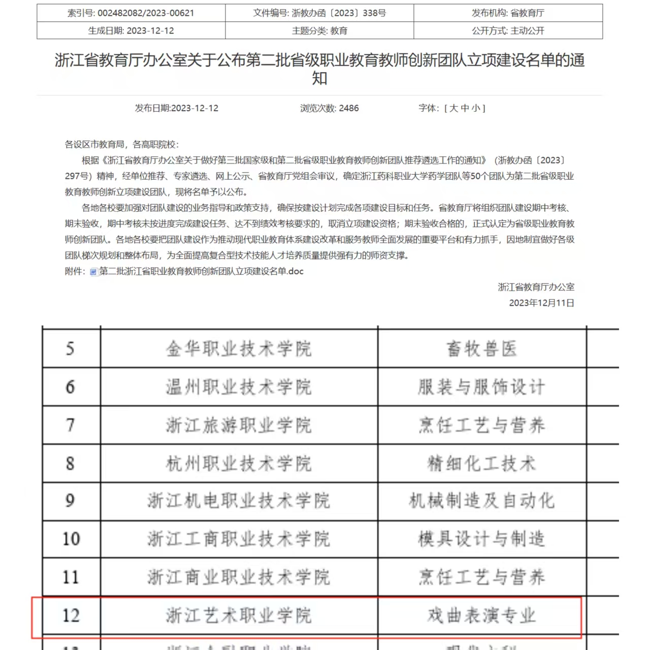 堅持教科研創(chuàng)并重發(fā)展、協(xié)同推進(jìn),獲國家級教學(xué)成果二等獎3項,省級教學(xué)成果特等獎、一等獎5項。戲曲表演專業(yè)獲評全國首批民族文化傳承與創(chuàng)新示范專業(yè)點(diǎn),教育部第三批現(xiàn)代學(xué)徒制試點(diǎn),國家級骨干專業(yè)和省級優(yōu)勢專業(yè),2019年戲曲表演專業(yè)群入選“中國特色高水平高職學(xué)校和專業(yè)建設(shè)”計劃單位。教學(xué)團(tuán)隊建設(shè)有《中國越劇·唱腔》國家級在線精品課程、“戲曲表演專業(yè)教學(xué)資源庫”“越劇唱腔教學(xué)資源共享共建平臺”,首創(chuàng)“越音易通”越劇語音電子字典APP填補(bǔ)了越劇音韻理論與新媒體技術(shù)融合的空白。建設(shè)省級以上教材3本、新形態(tài)教材2本,20余個教科研項目獲省部級以上立項。獲批國家藝術(shù)基金項目4項,浙江文化藝術(shù)發(fā)展基金資助項目3項,量身打造夢幻版《牡丹亭》《紅樓人物秀》《步步驚心》、青春越劇《五女拜壽》《斷橋》、原創(chuàng)越劇《幽蘭逢春》等優(yōu)秀舞臺作品20余部,創(chuàng)排小劇場越劇《顏氏》,開啟校本特色“演藝新空間”新探索。