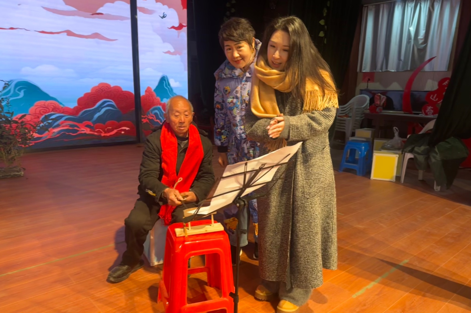 老師們認(rèn)真觀看了《金蛇狂舞》《采茶舞曲》等節(jié)目的排練,從專業(yè)視角出發(fā),對(duì)節(jié)目中的音樂(lè)編排、器樂(lè)演奏、舞臺(tái)表演等各個(gè)方面,進(jìn)行了細(xì)致入微的指導(dǎo),并與春晚骨干成員展開(kāi)深入交流。章蔓麗老師感慨道,17年前她初次到訪月山村,便被月山春晚中村民們自編自導(dǎo)自演的創(chuàng)意與熱情所深深打動(dòng)。村民們利用農(nóng)閑時(shí)光,積極投身文藝活動(dòng),尤其是保留節(jié)目《農(nóng)活秀》,充分彰顯了藝術(shù)源于生活的真諦。她還承諾,后續(xù)將帶領(lǐng)支部黨員教師持續(xù)關(guān)注月山村,深入采風(fēng),與村民們攜手挖掘月山村的歷史文化與民俗風(fēng)情,并以此為靈感創(chuàng)作作品,融入到節(jié)目之中,讓月山春晚更具獨(dú)特魅力與地方特色。