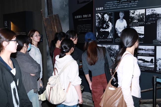 踏入紀(jì)念館,莊嚴(yán)肅穆的氛圍撲面而來。師生們在展廳中緩緩前行,從淞滬會戰(zhàn)的硝煙彌漫,到浙江本土抗日力量的頑強堅守,每一個歷史場景的呈現(xiàn),都像是一記重錘,叩擊著大家的心靈。在受降儀式的還原場景前,眾人久久佇立,見證那來之不易的勝利時刻,而這份正義的實現(xiàn),離不開無數(shù)仁人志士前赴后繼的奮斗與犧牲。
