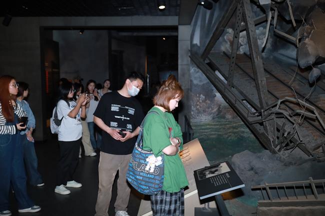 館內(nèi)豐富的歷史文物、珍貴的圖文資料,宛如時光的拼圖,徐徐展開那段沉重而激昂的歷史畫卷。師生們自發(fā)分散開來,卻又都不約而同地放慢腳步,目光緊緊鎖定在每一件展品之上。