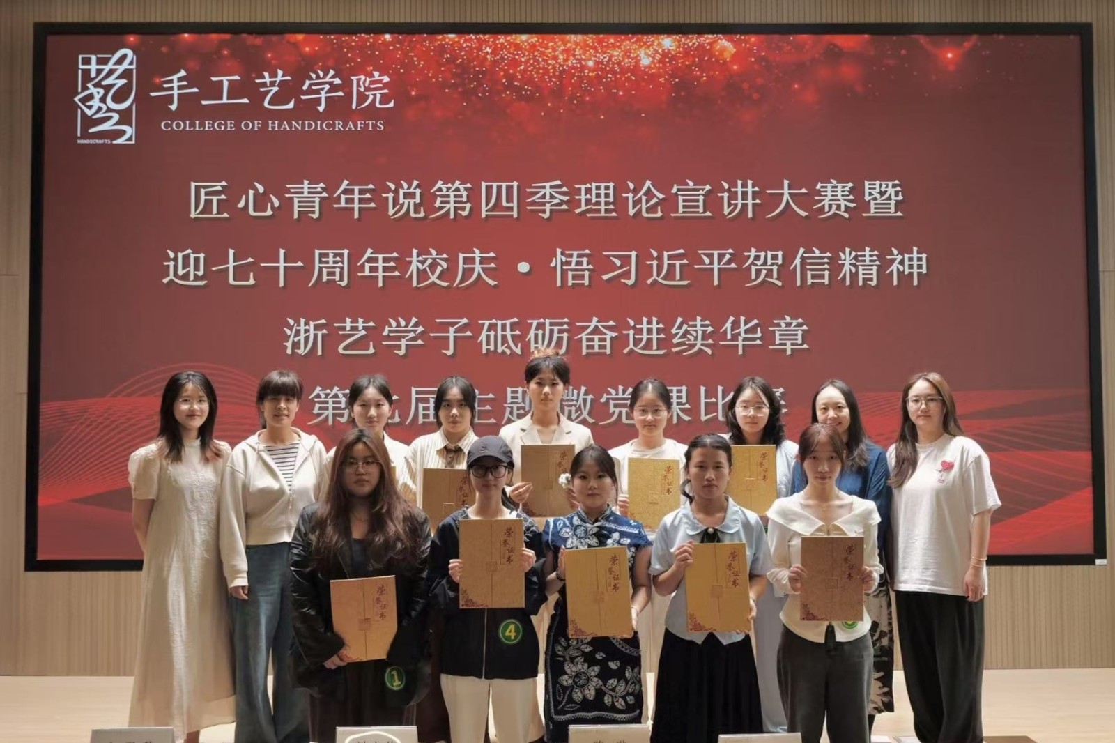 4月17日,手工藝學院在新教學樓A102小報告廳舉辦“匠心青年說”第四季理論宣講大賽暨“迎七十周年校慶·悟習近平賀信精神浙藝學子砥礪奮進續(xù)華章”第七屆主題微黨課比賽。10名手工藝學子為大家呈現(xiàn)了一場獨具匠心、聲情并茂的宣講盛宴。