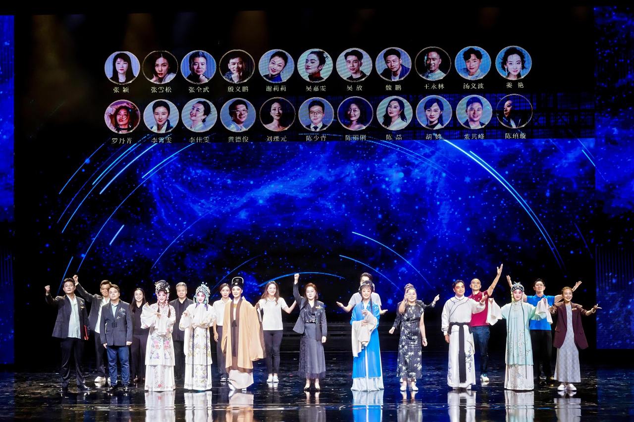 “夜空中央一縷星光,種下希望指引著方向……”當(dāng)晚的演出從1111人才計(jì)劃主題歌《星輝》開場。這首由學(xué)員陳晶作詞、殷義鵬和陳少青作曲的作品,音樂創(chuàng)作靈感來自于演出前的鐘聲。融合了戲腔演唱、全體學(xué)員合唱的表演,似乎一下就把3年間的學(xué)習(xí)、采風(fēng)、創(chuàng)作、演出等過程畫面拉到了學(xué)員面前。