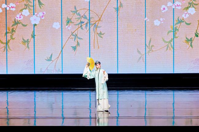 “夜空中央一縷星光,種下希望指引著方向……”結業(yè)典禮當晚,學員們以自編、自導、自演的精彩節(jié)目,全方位展示三年學習成果。演出在人才計劃主題歌《星輝》中拉開帷幕,作品融合戲腔與合唱,生動展現(xiàn)三年培養(yǎng)歷程。隨后,陳麗俐帶來的婺劇《穆桂英掛帥》,入選國家藝術基金優(yōu)秀作品展演的群舞《榫卯》,以及越劇《情探》、京劇《望江亭》、雜技《夢系西湖・傘技》等節(jié)目精彩紛呈,實現(xiàn)傳統(tǒng)藝術與創(chuàng)新表達的有機融合,贏得現(xiàn)場觀眾熱烈反響。演出舞美設計由學員吳放完成,以金色為主調(diào)搭配風動幕墻,寓意學員綻放藝術光彩。
