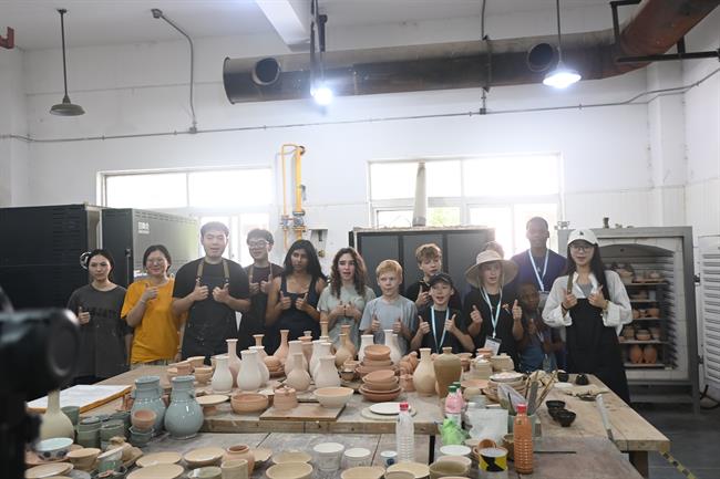 結(jié)營儀式上,學員們展示了親手制作的銅畫、青瓷和扎染作品,并分享了研學心得。這些年輕的文化使者正在用藝術語言書寫友誼新篇,當美國青年把扎染圍巾系在頸間,文化交融的故事就有了最生動的注腳。