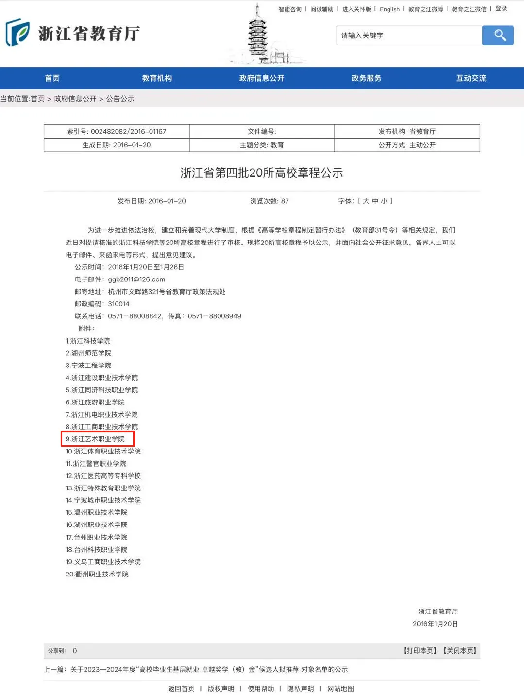 《浙江藝術(shù)職業(yè)學(xué)院章程》獲批發(fā)布