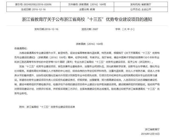 4個(gè)專業(yè)入選浙江省高校“十三五”優(yōu)勢(shì)專業(yè)