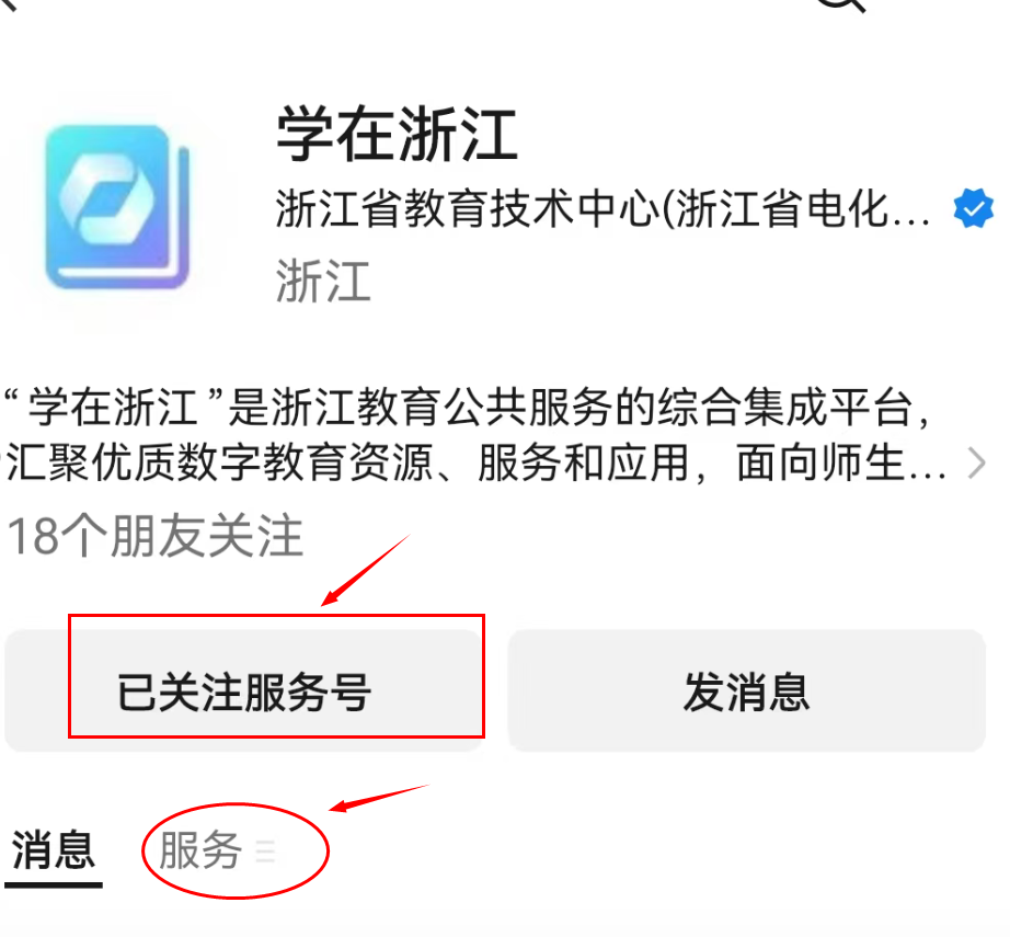 第一步:打開微信,關(guān)注微信公眾號(hào)“學(xué)在浙江”→選擇“服務(wù)”→點(diǎn)擊“師訓(xùn)平臺(tái)”→輸入師訓(xùn)平臺(tái)賬號(hào)和密碼,點(diǎn)擊“登錄”;