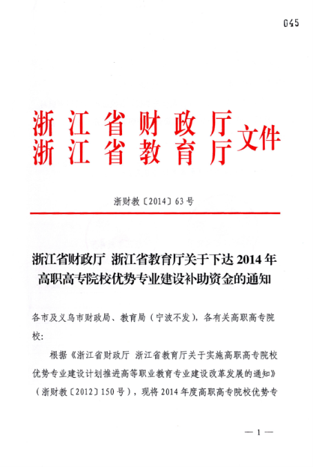 浙江省財政廳 浙江省教育廳關(guān)于發(fā)布2014年高職高專院校優(yōu)勢專業(yè)建設(shè)補助資金的通知
