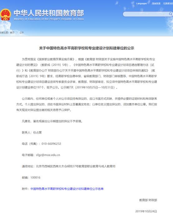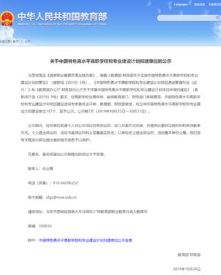 入選中國特色高水平高職學(xué)校和專業(yè)建設(shè)計劃擬建單位
