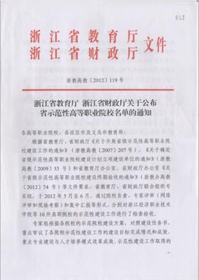2012年,學(xué)校通過檢查驗收,被授予“浙江省示范性高等職業(yè)院校”;群舞《畬家女兒拍》參加第十屆全國“桃李杯”舞蹈比賽獲群舞一等獎。
