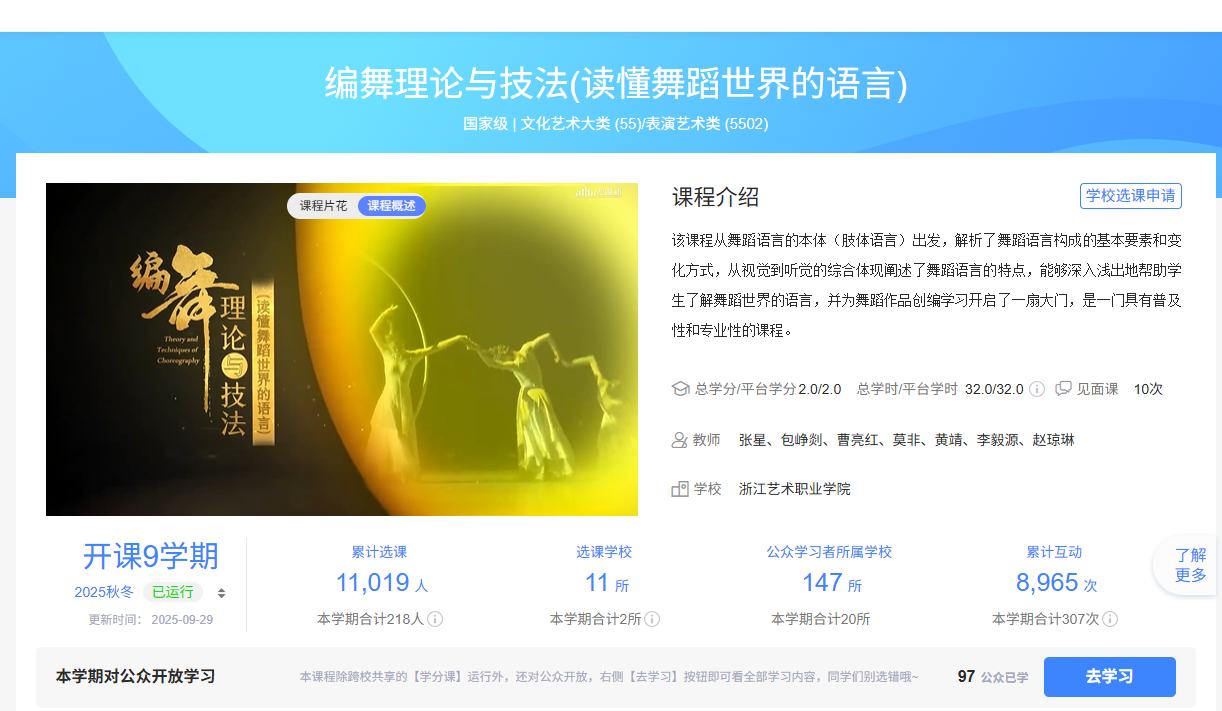 >《編舞理論與技法》入選教育部國家在線精品課程