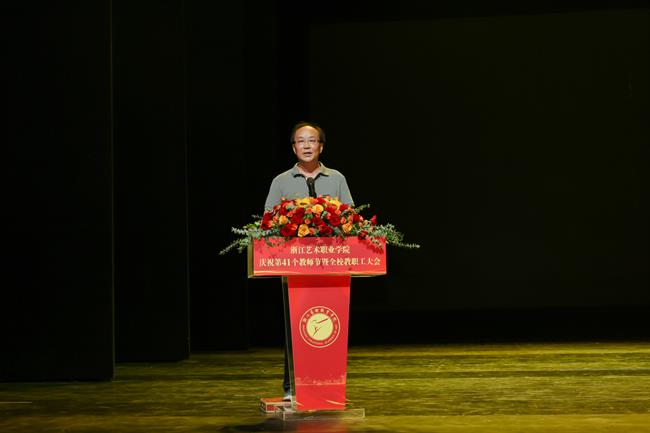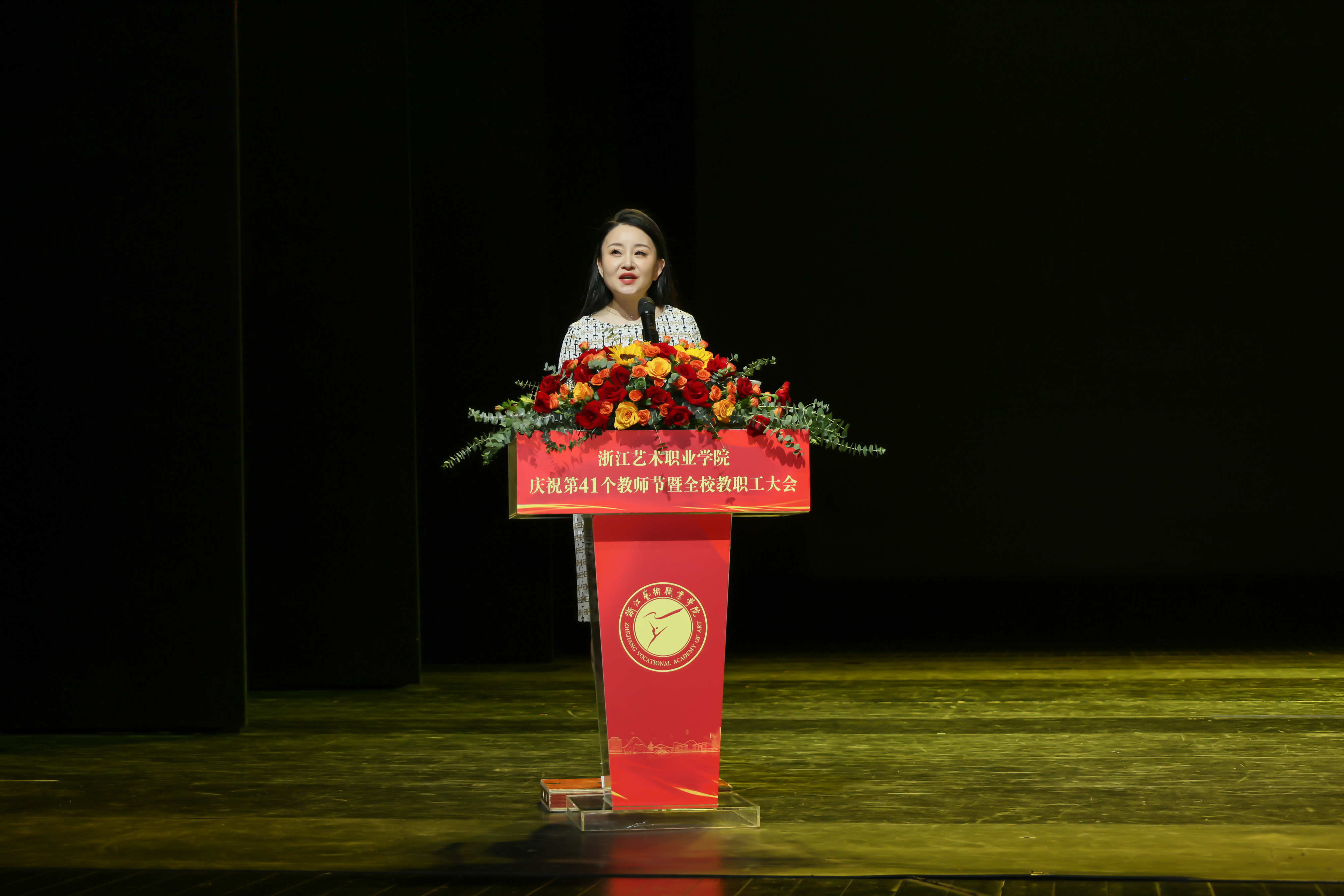 校學生會執(zhí)行主席、演藝與教育學院23學前教育2班從書婷作為學生代表,真摯表達了對老師們辛勤培育的感激之情,并代表全體浙藝學子立志傳承浙藝精神、不負韶華、砥礪前行,為學校高質量發(fā)展貢獻青春力量。