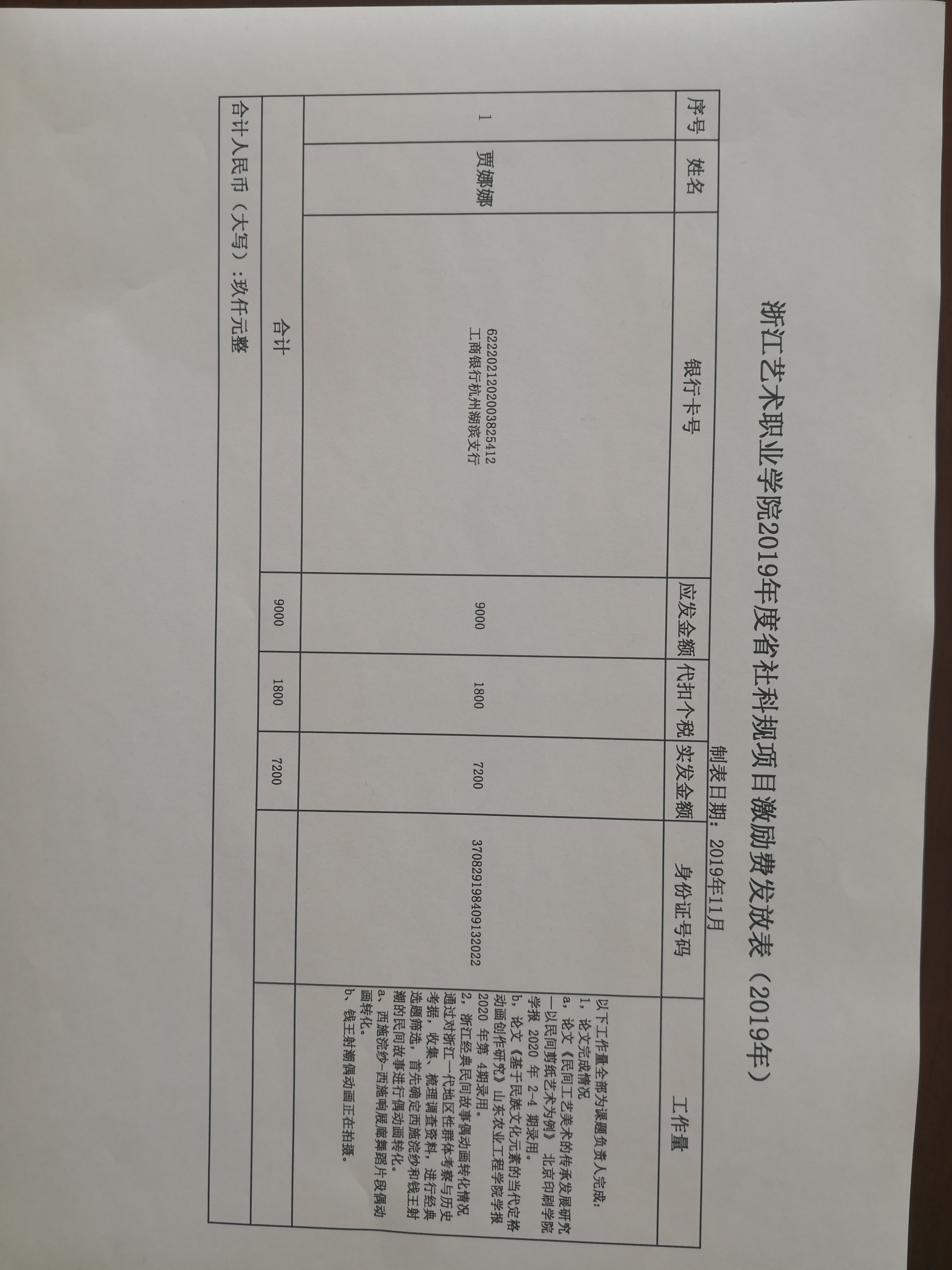 2019 年度浙江省哲學(xué)社會科學(xué)規(guī)劃青年課題激勵費發(fā)放表