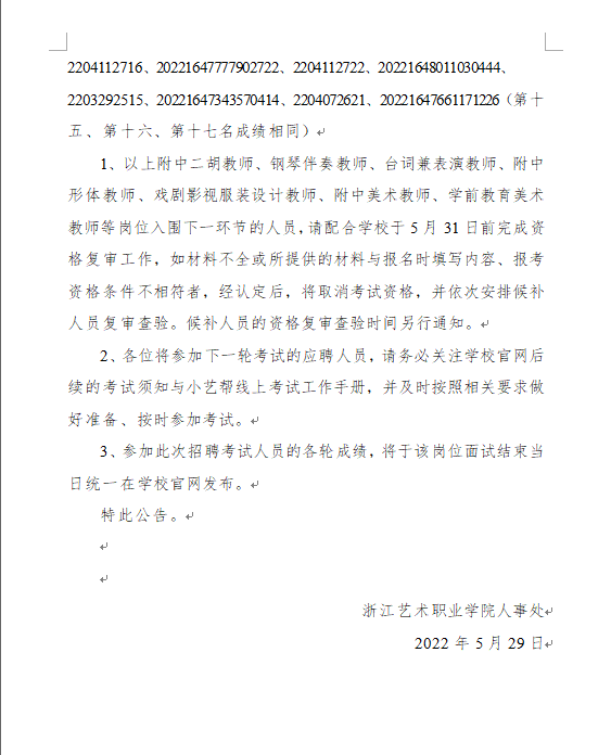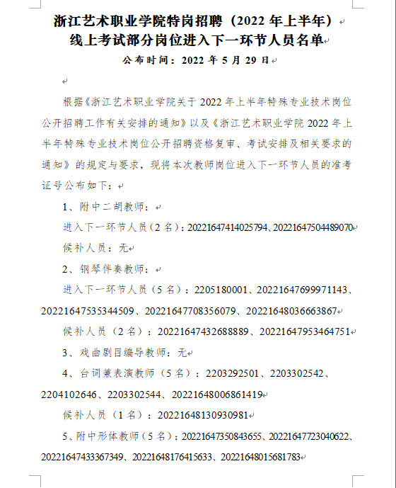 浙江藝術(shù)職業(yè)學(xué)院特崗招聘(2022年上半年) 線上考試部分崗位進(jìn)入下一環(huán)節(jié)人員名單